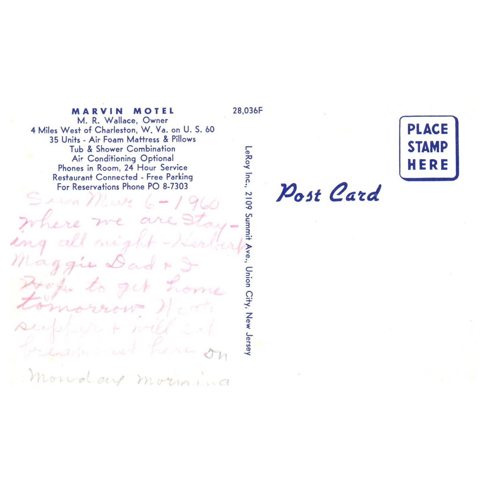 Vintage Postcard - Marvin Motel M.R. Wallace Charleston W. Va AD9