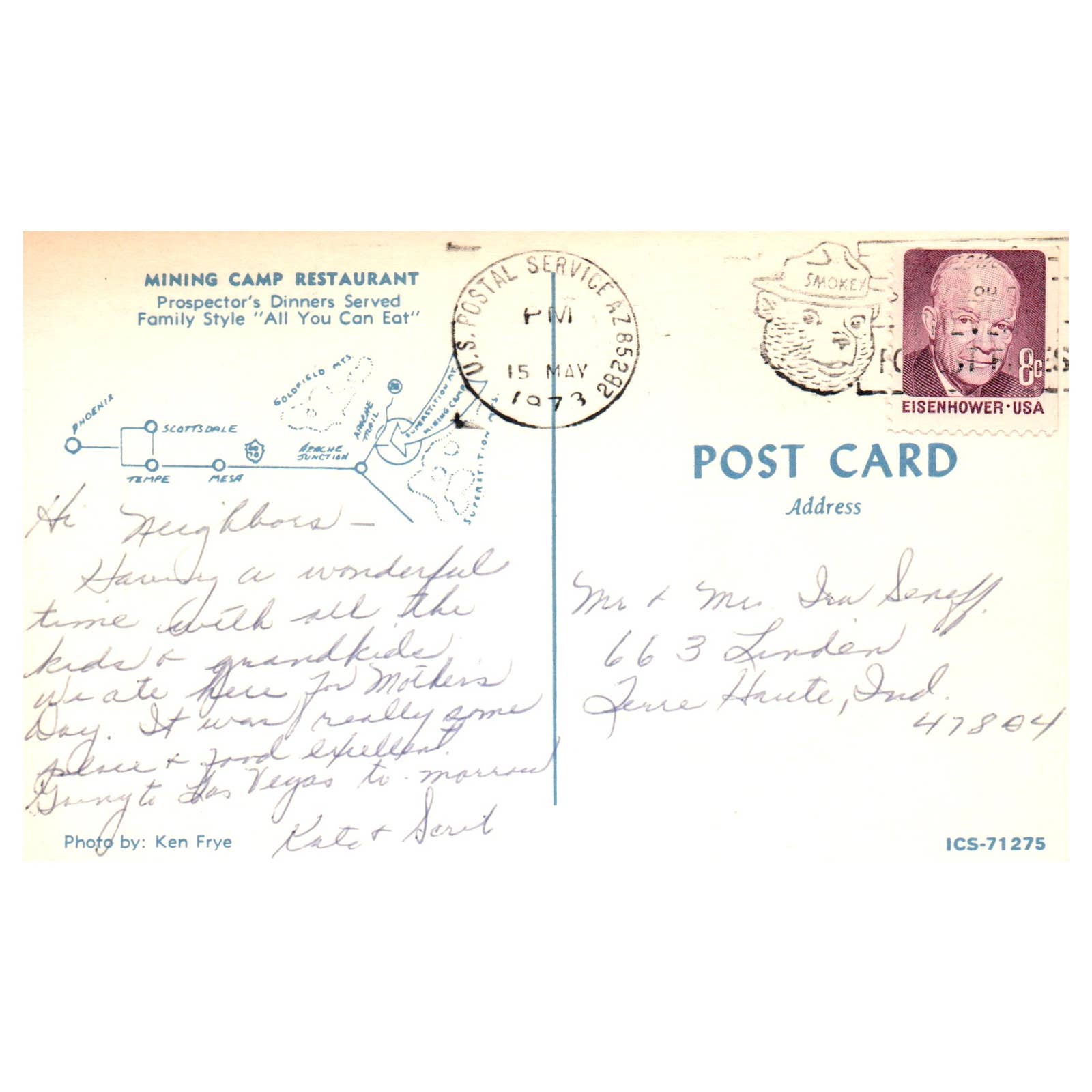 Vintage Postcard - Mining Camp Restaurant Dining Room Mesa AZ AD9
