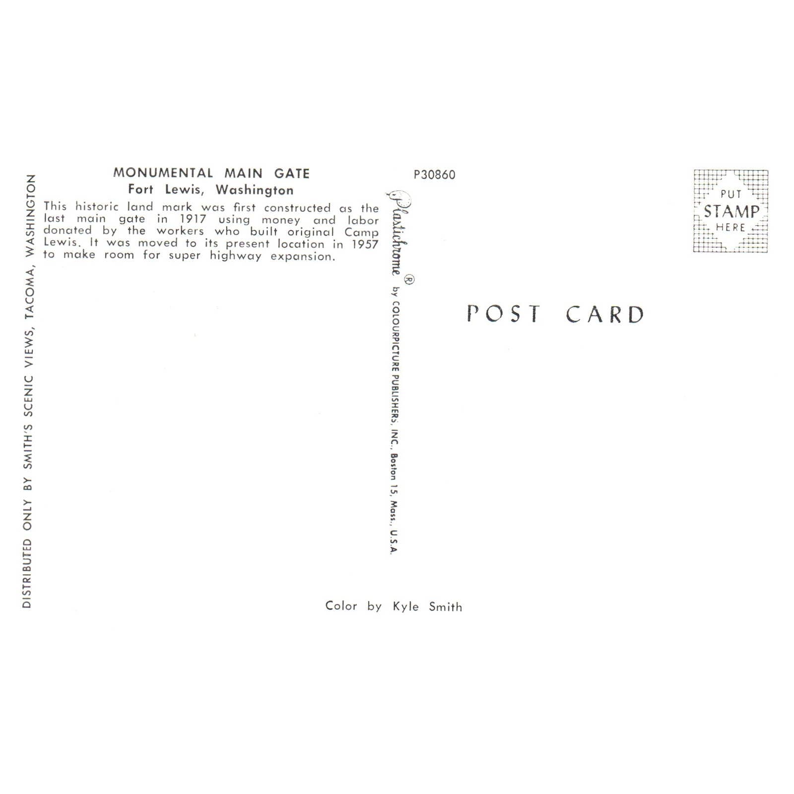 Vintage Postcard - Monumental Main Gate Fort Lewis Washington AD9