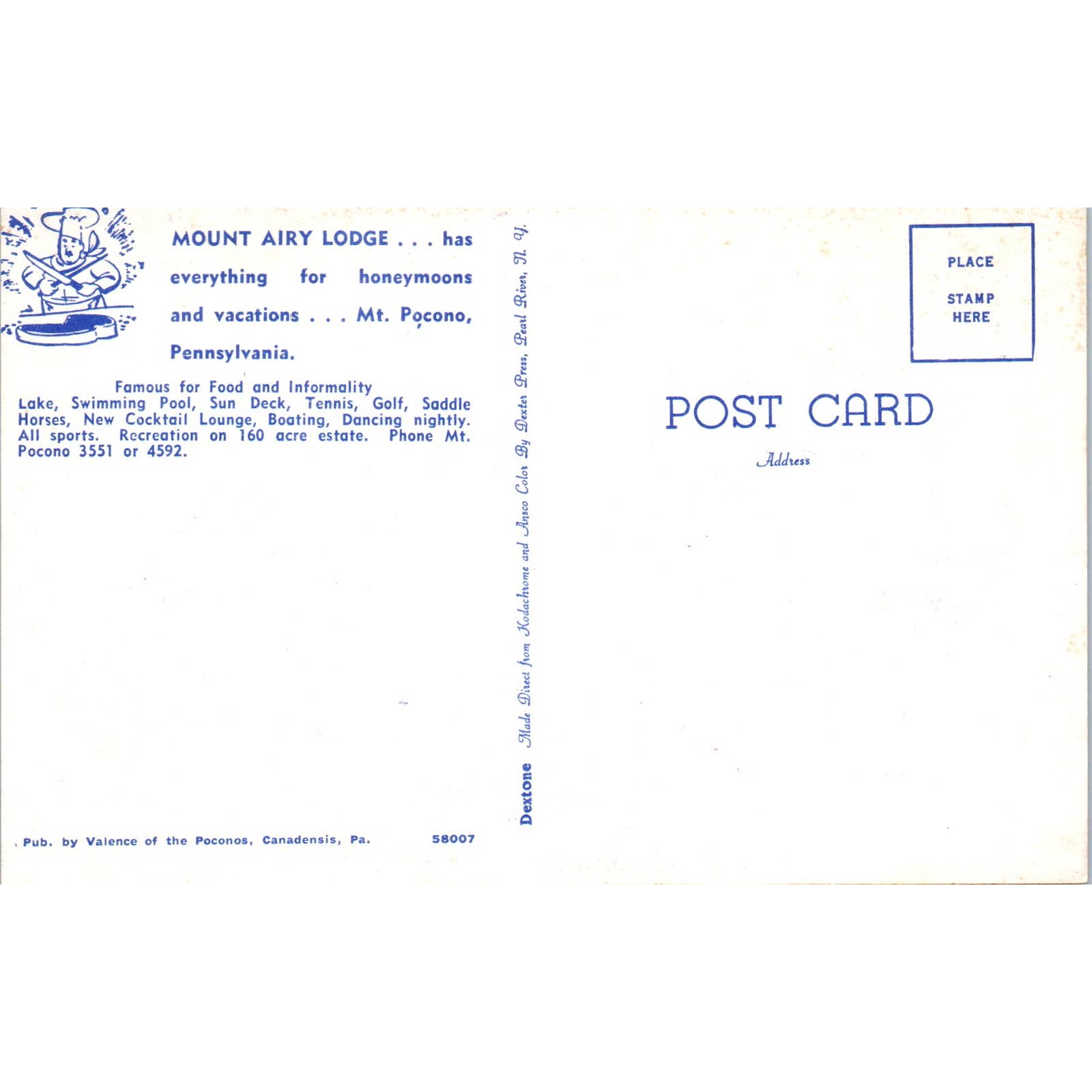 Vintage Postcard Mount Airy Lodge Mt. Pocono PA TD8-P2