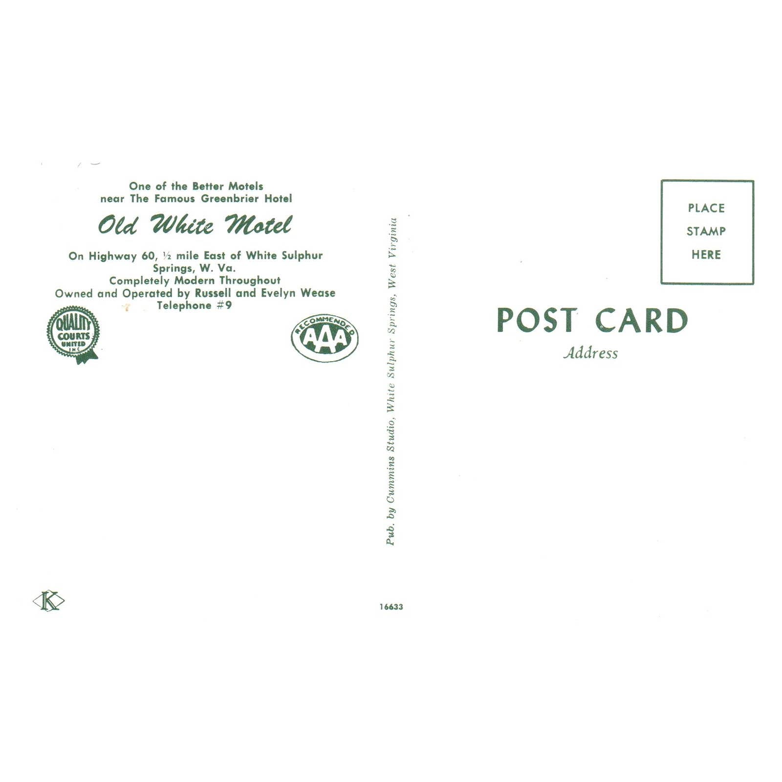 Vintage Postcard - Old White Motel White Sulphur Springs West Virginia AD9
