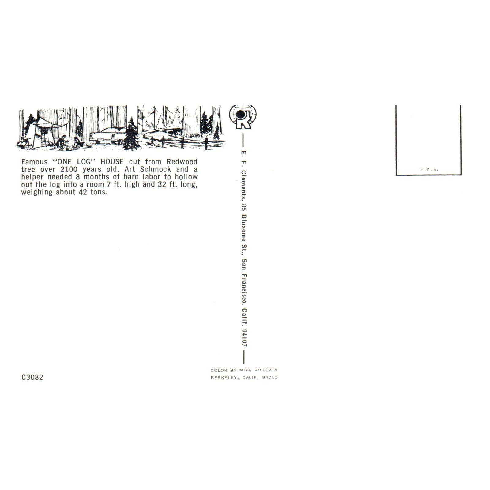 Vintage Postcard - One-Log House Garberville California AD9