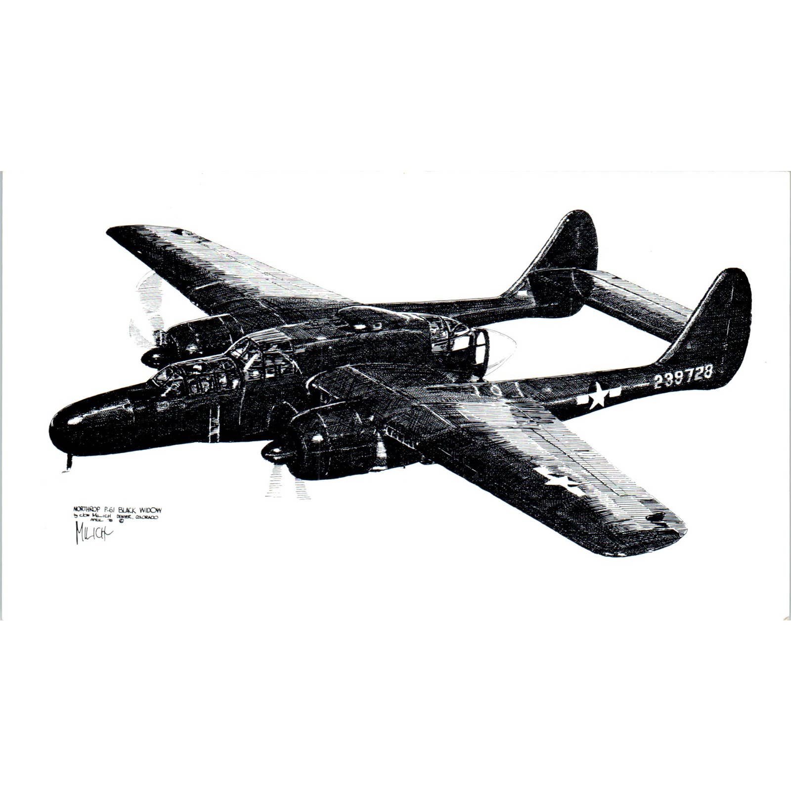 Vintage Postcard P-61 Black Widow Fighter Plane From the Warbird Collection EA3