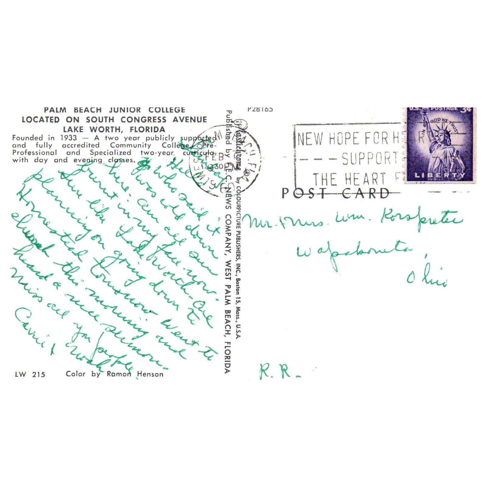 Vintage Postcard - Palm Beach Junior College Congress Avenue Lake Worth FL AD9