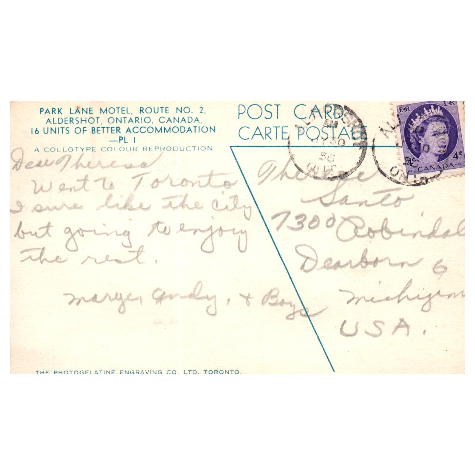 Vintage Postcard - Park Lane Motel Ontario Canada 1956 AD9
