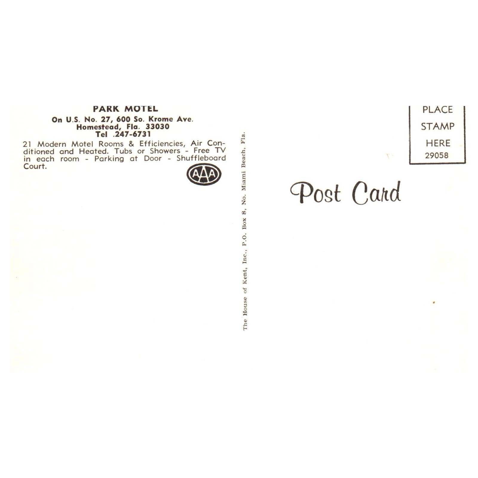 Vintage Postcard - Park Motel Homestead Florida AAA TJ7-1