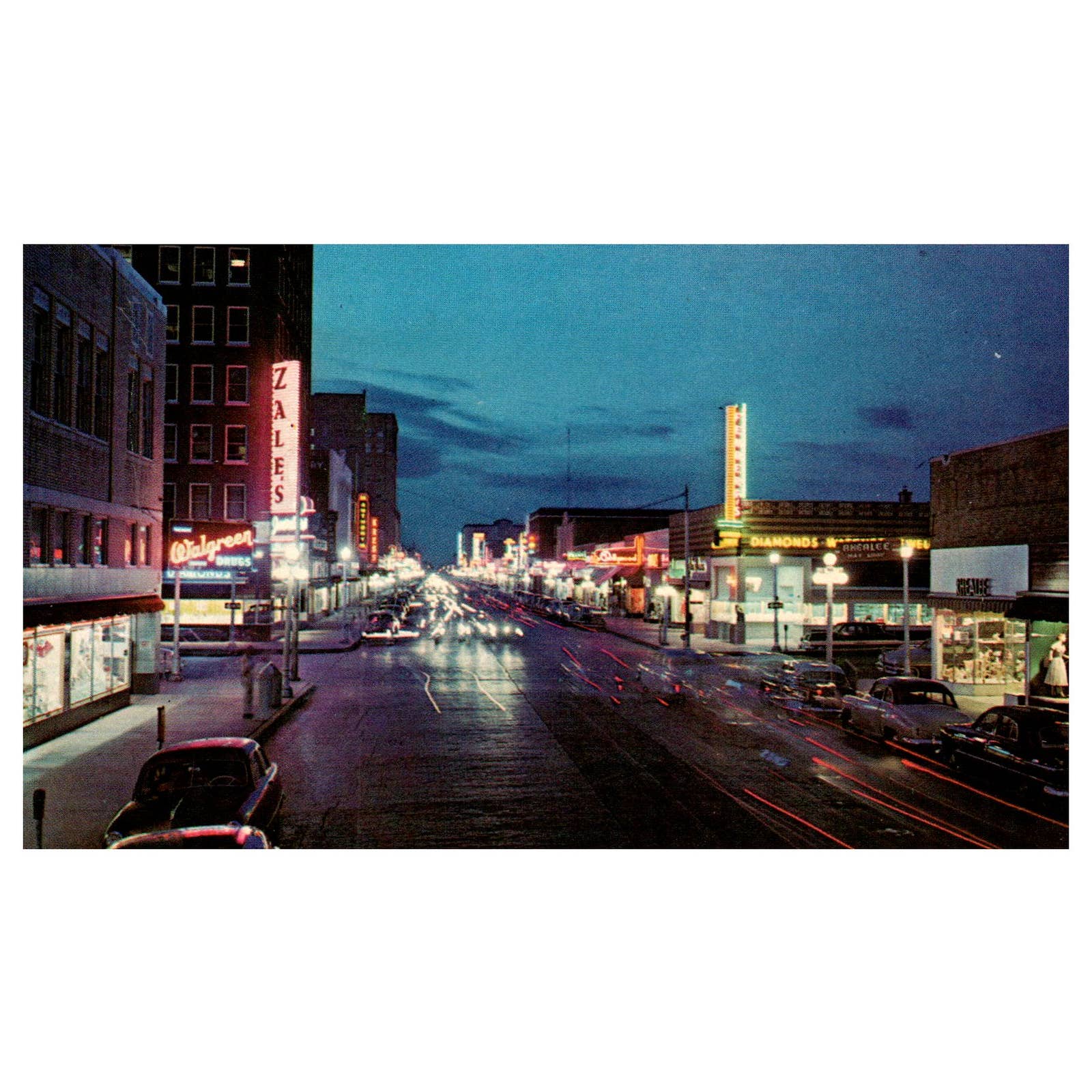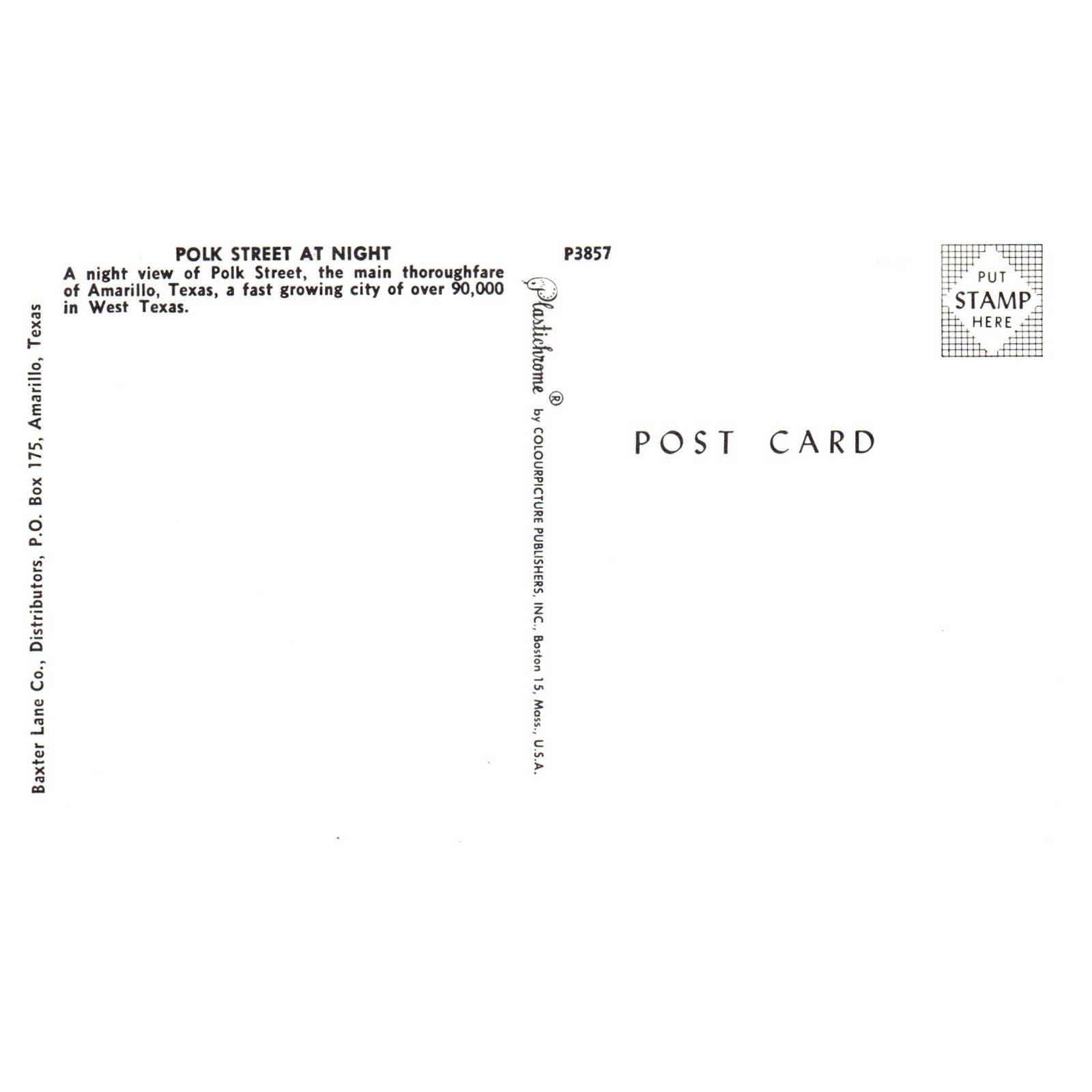 Vintage Postcard - Polk Street at Night Amarillo West Texas AD9
