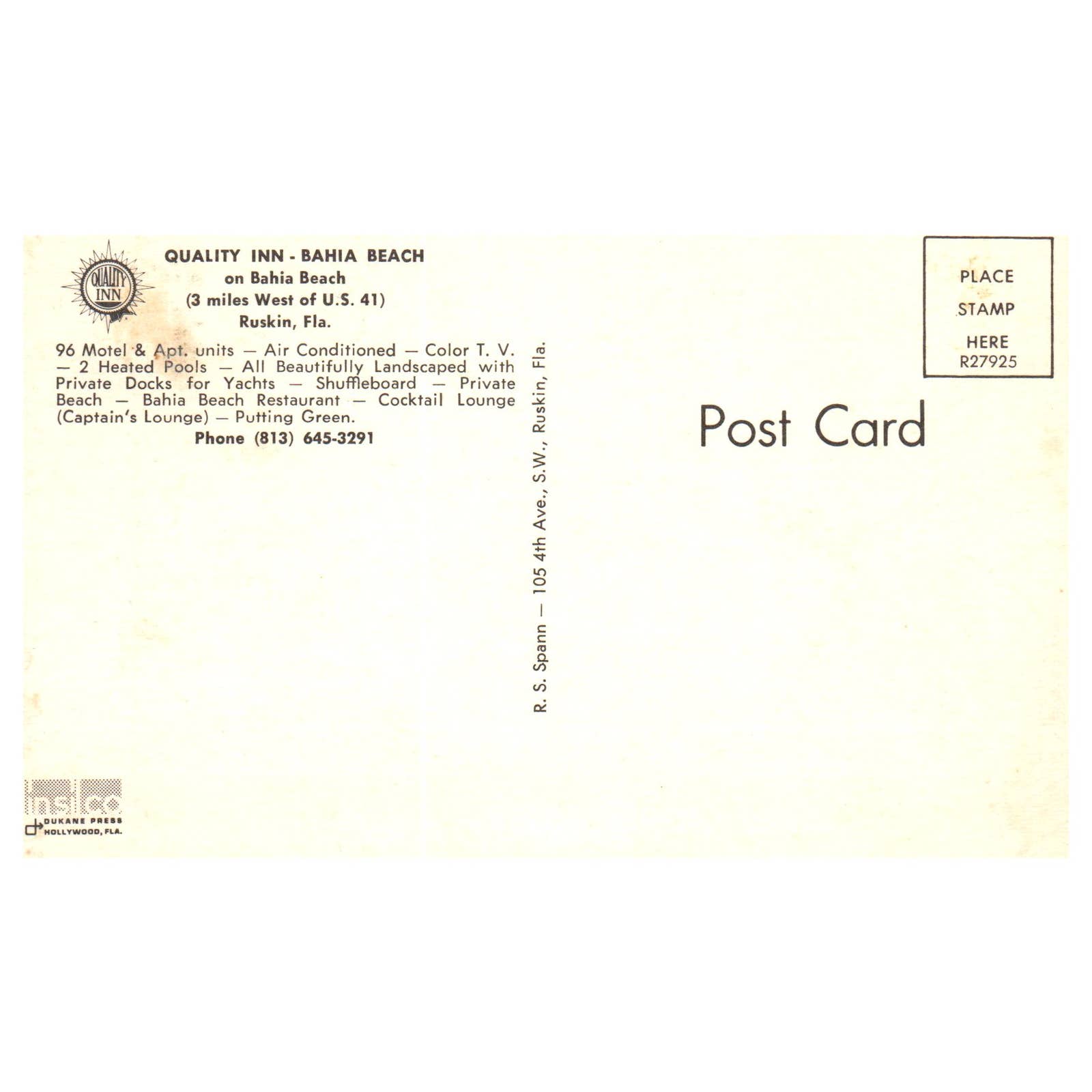 Vintage Postcard - Quality Inn Bahia Beach Ruskin Florida AD9
