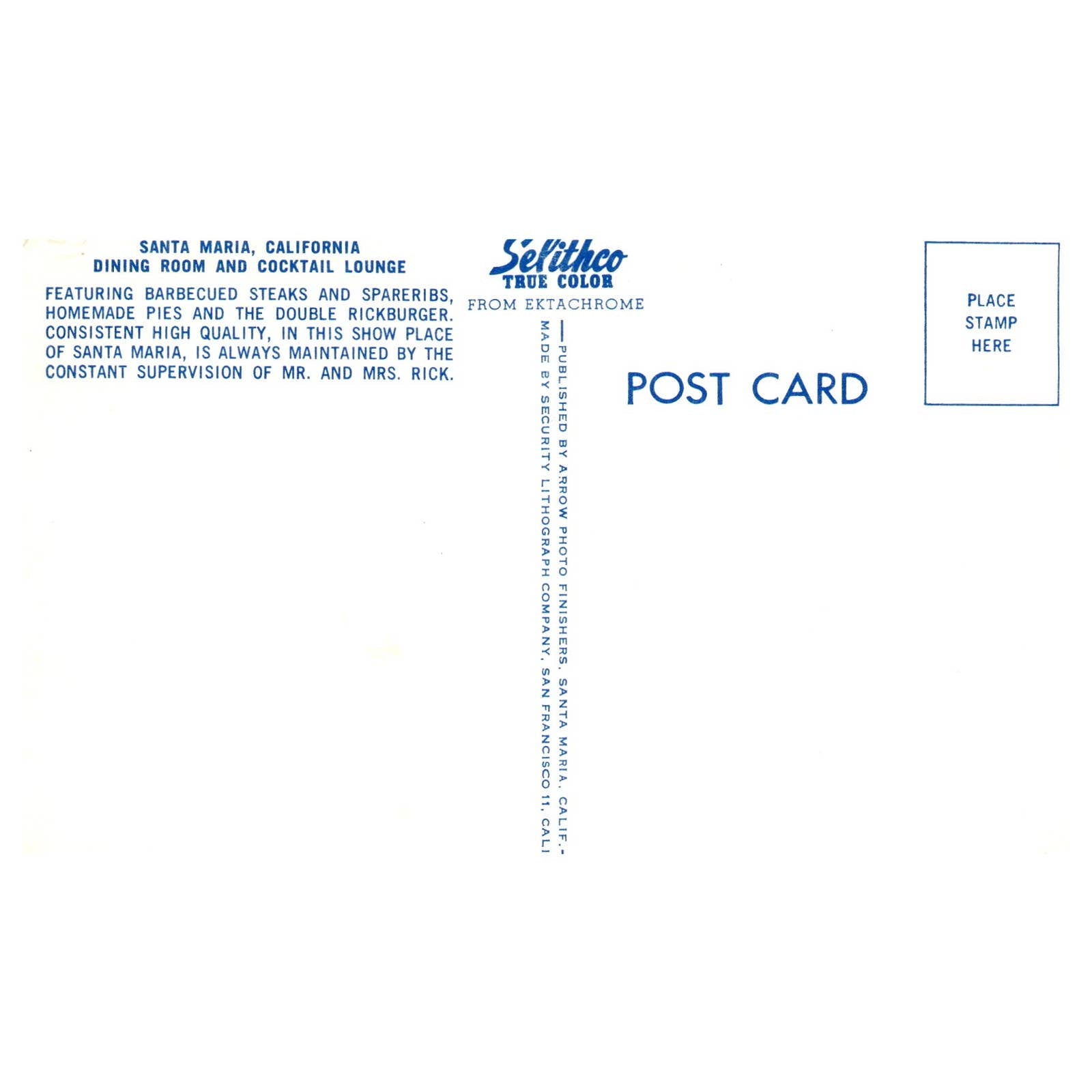 Vintage Postcard - Rick's Drive-In Restaurant Interior Santa Maria CA AD9