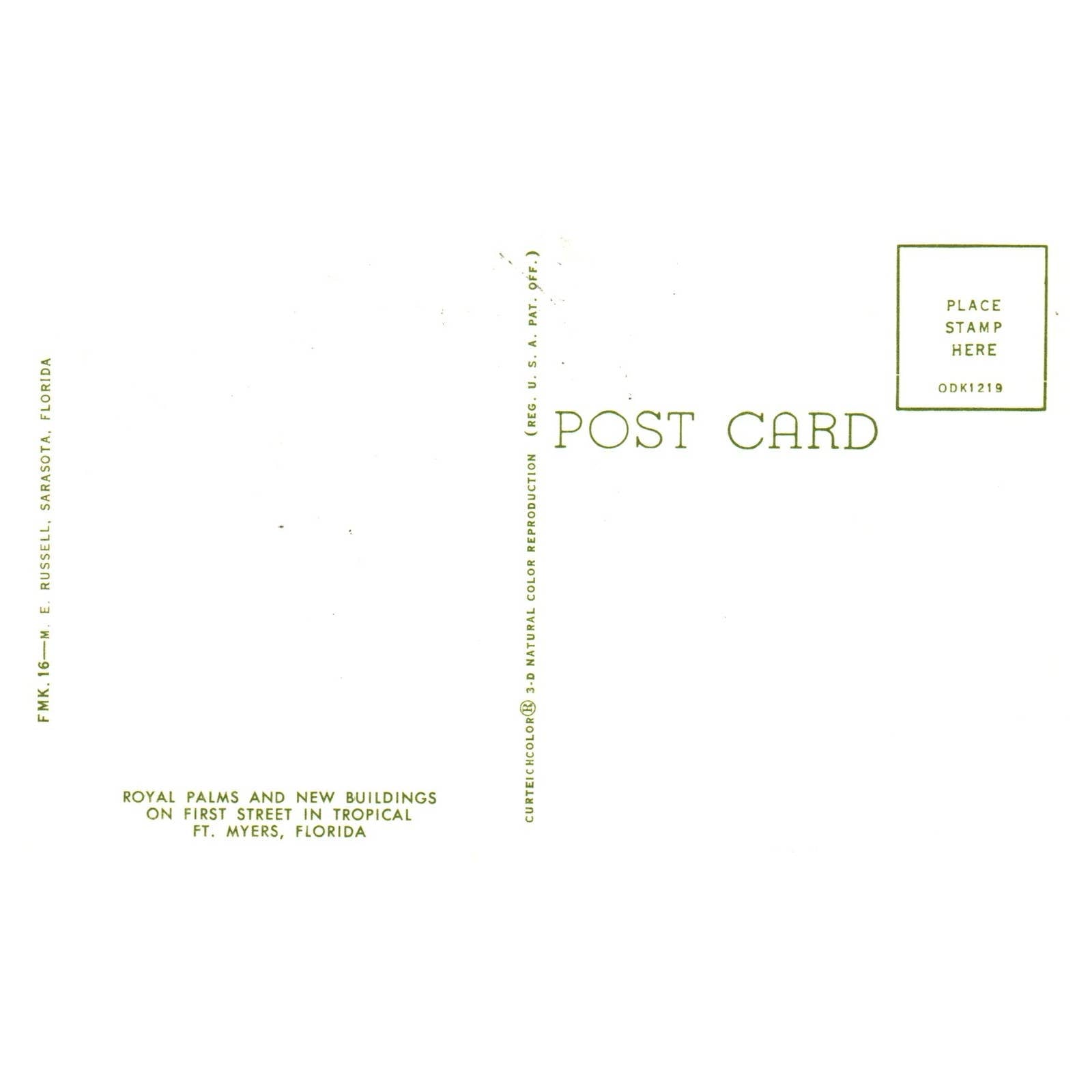 Vintage Postcard - Royal Palms and New Buildings 1st St Fort Myers Florida TJ6-1