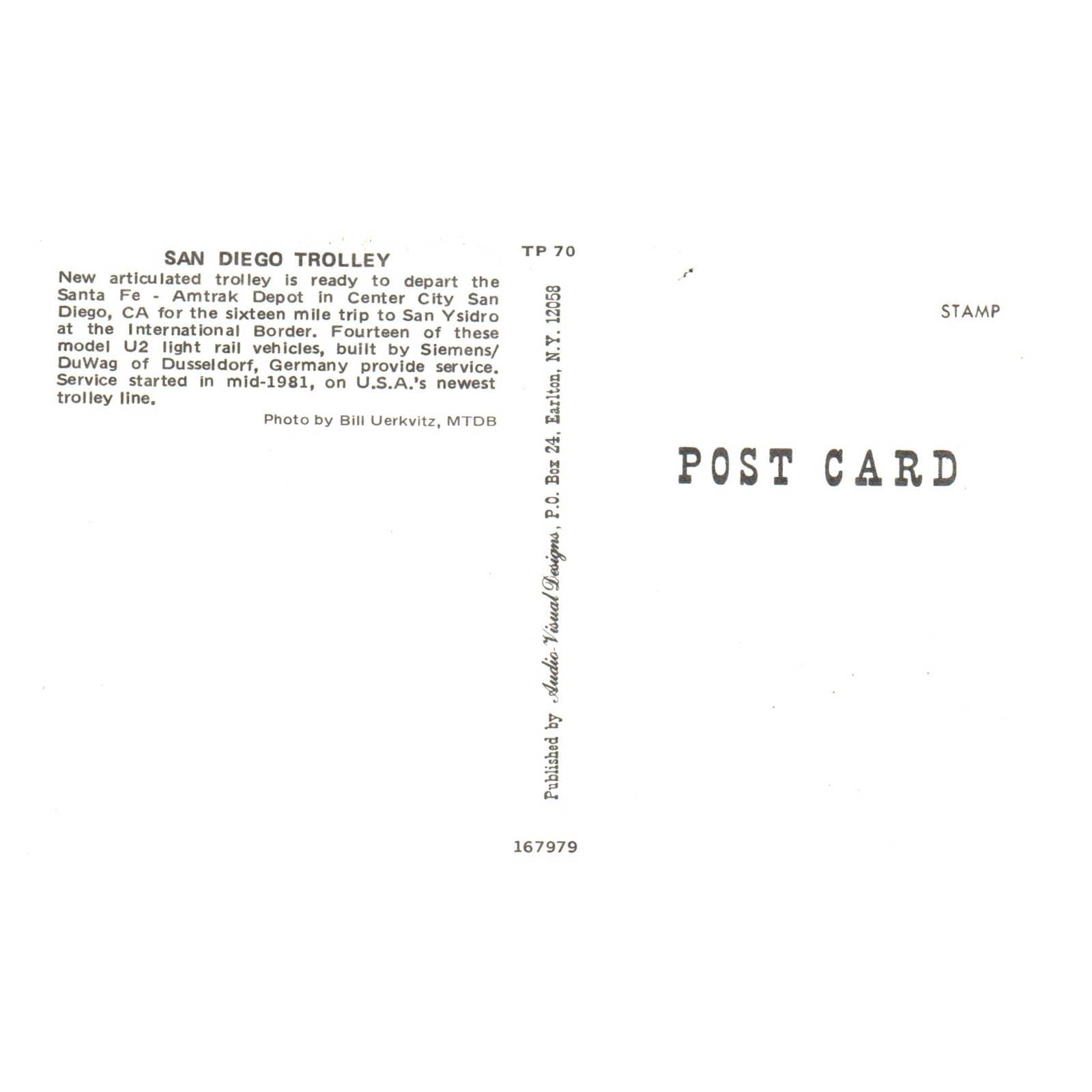 Vintage Postcard - San Diego Trolley Amtrak Depot TJ6-1