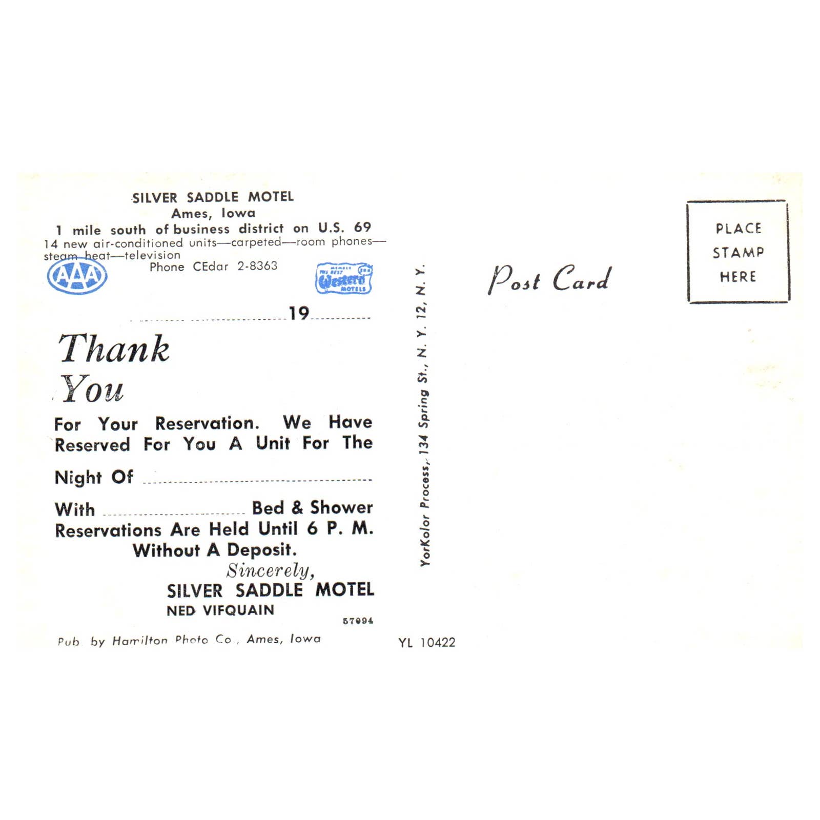 Vintage Postcard - Silver Saddle Motel Ames Iowa AD9