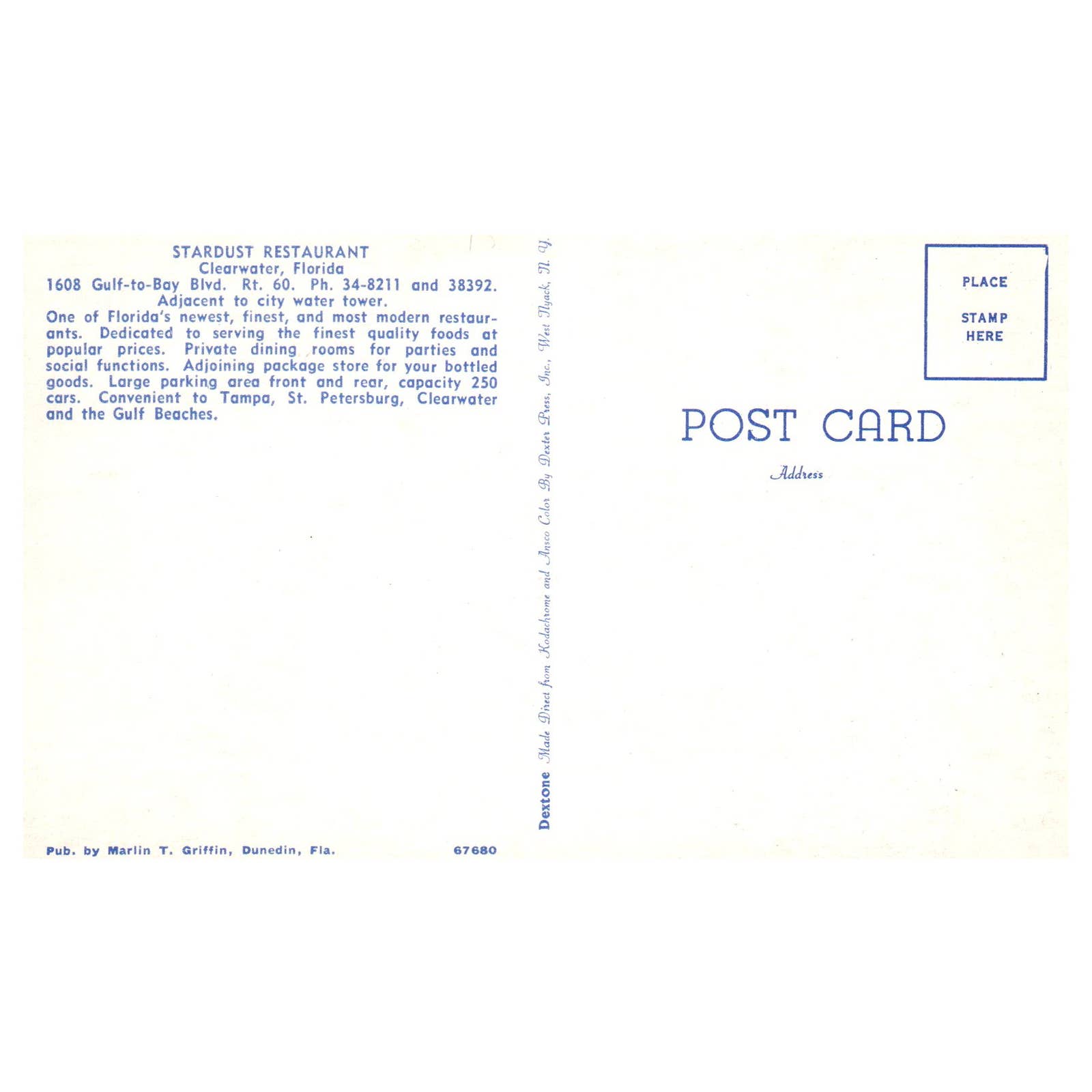 Vintage Postcard - Stardust Restaurant Dining Room Clearwater Florida AD9