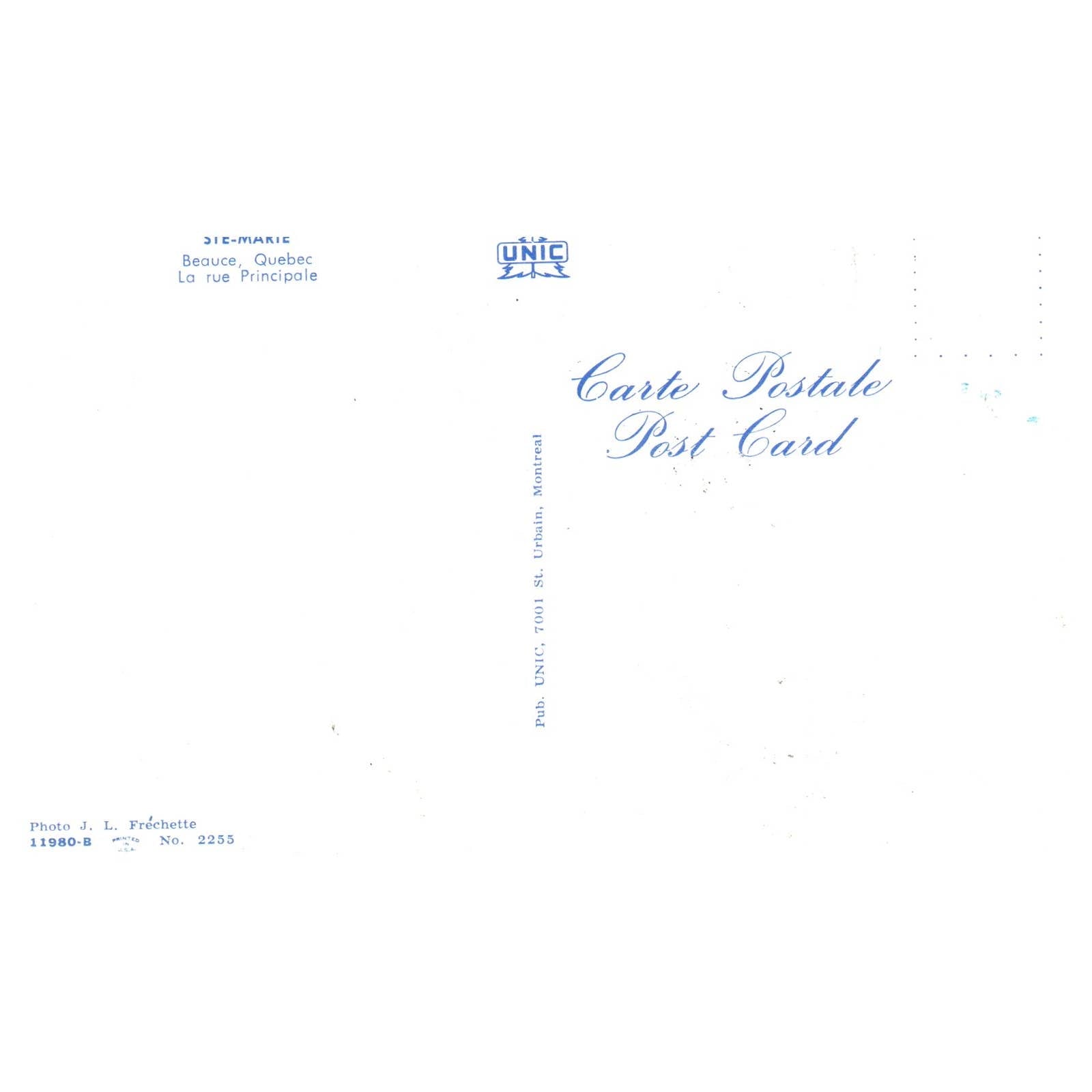 Vintage Postcard - STE Marie Beauce Quebec La Rue Principale AD9