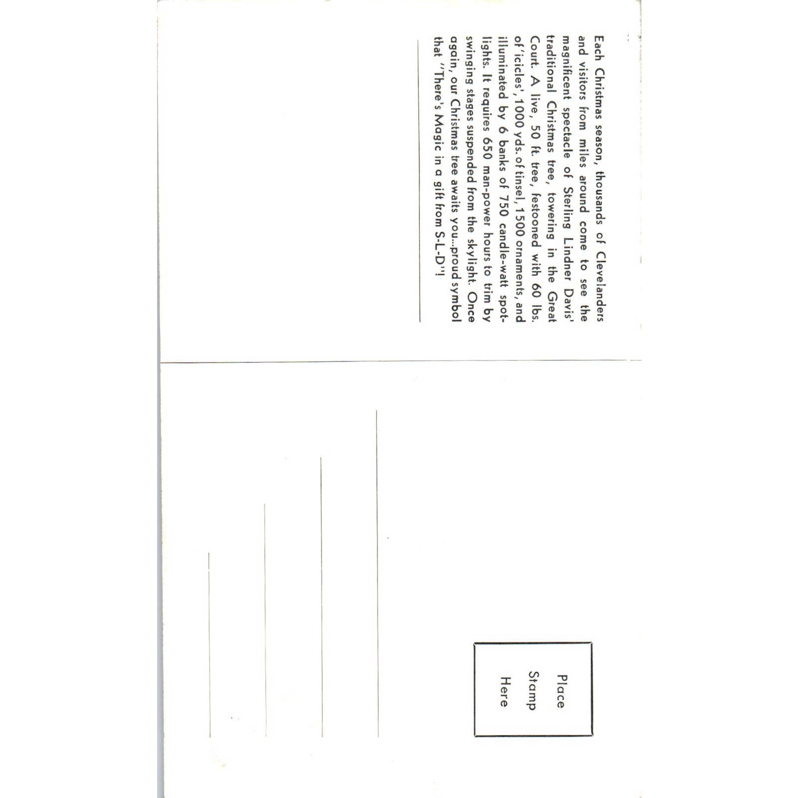 Vintage Postcard Traditional Sterling Christmas Tree Lindner Davis Cleveland OH TD8-O2