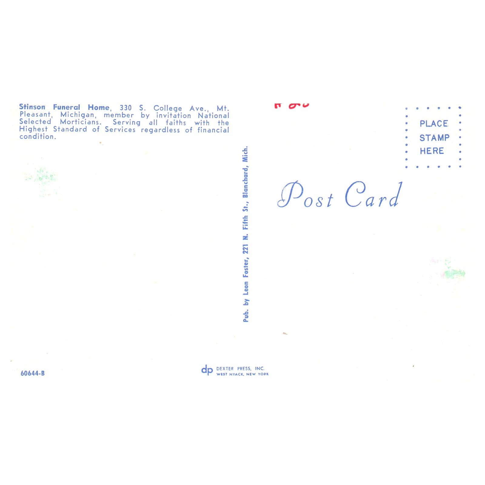 Vintage Postcard - Stinson Funeral Home Mt. Pleasant Michigan TJ7-1