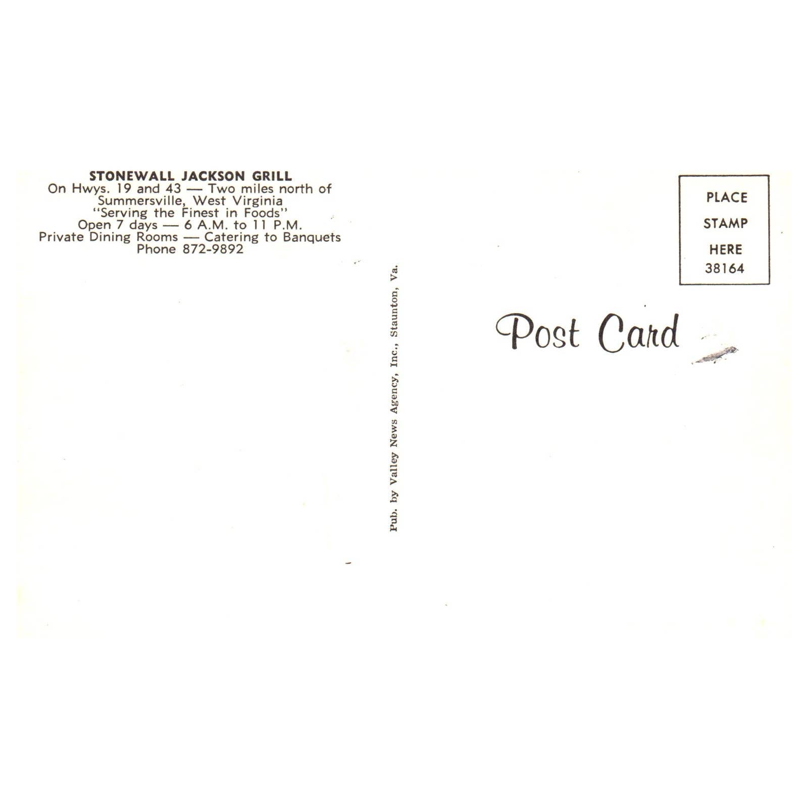 Vintage Postcard - Stonewall Jackson Grill Summersville West Virginia AD9