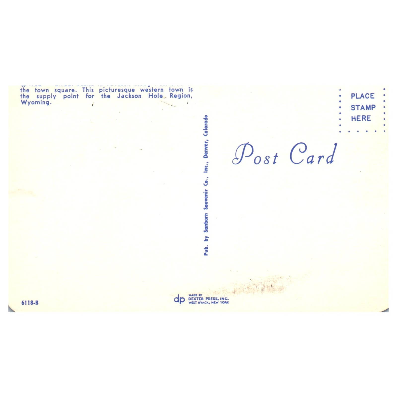 Vintage Postcard - Street Scene Along West Side Town Square Jackson Hole WY AD9