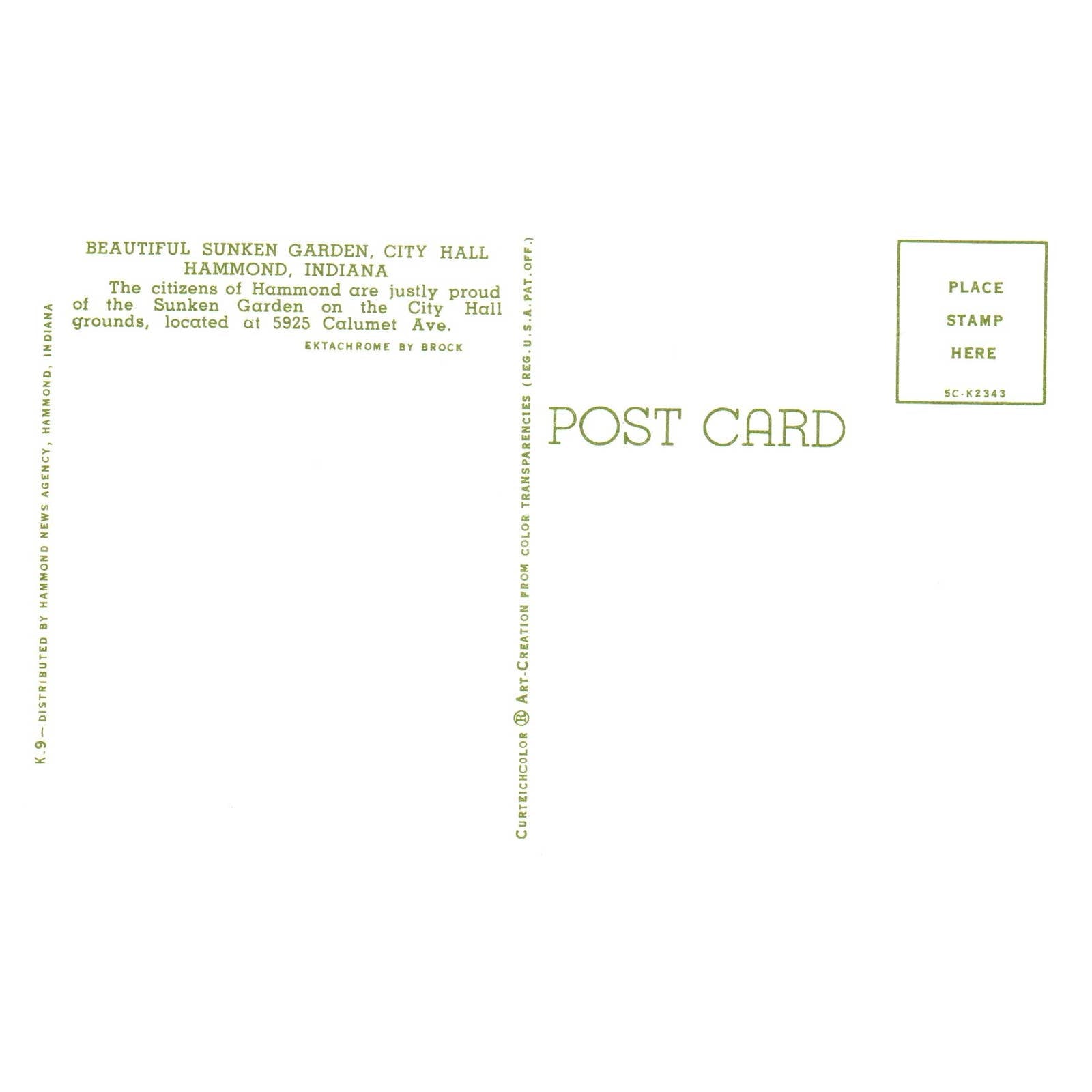 Vintage Postcard - Sunken Garden, City Hall - Hammond Indiana AD9