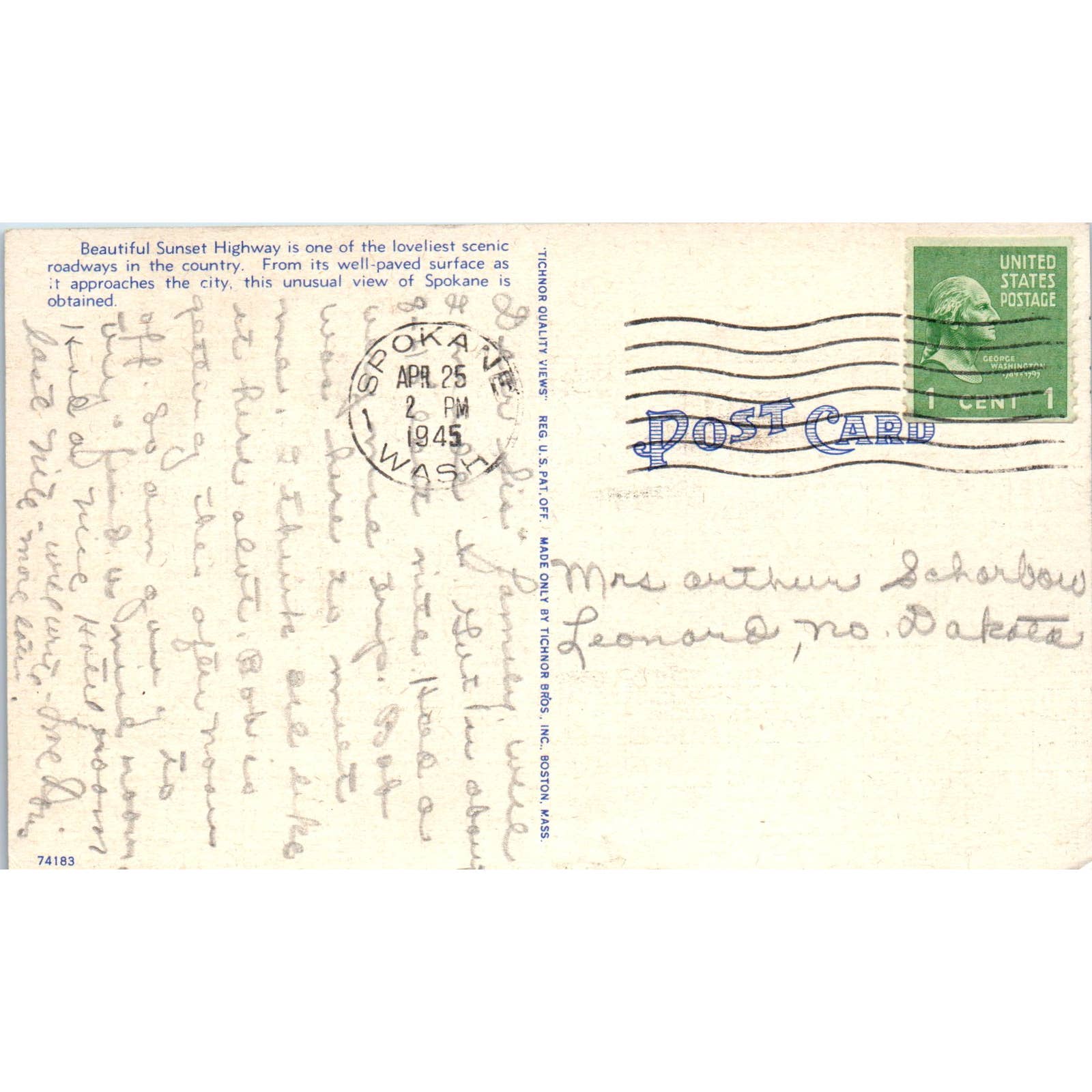 Vintage Postcard Sunset Highway Approach to Spokane Washington TD9-W2