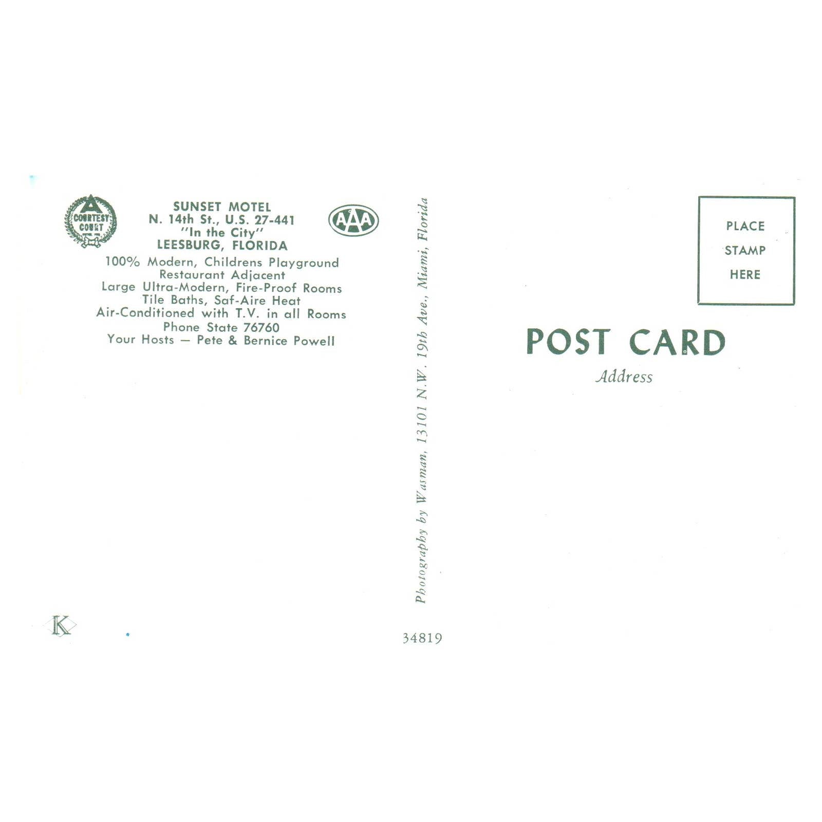 Vintage Postcard - Sunset Motel AAA Leesburg Florida TJ6-1