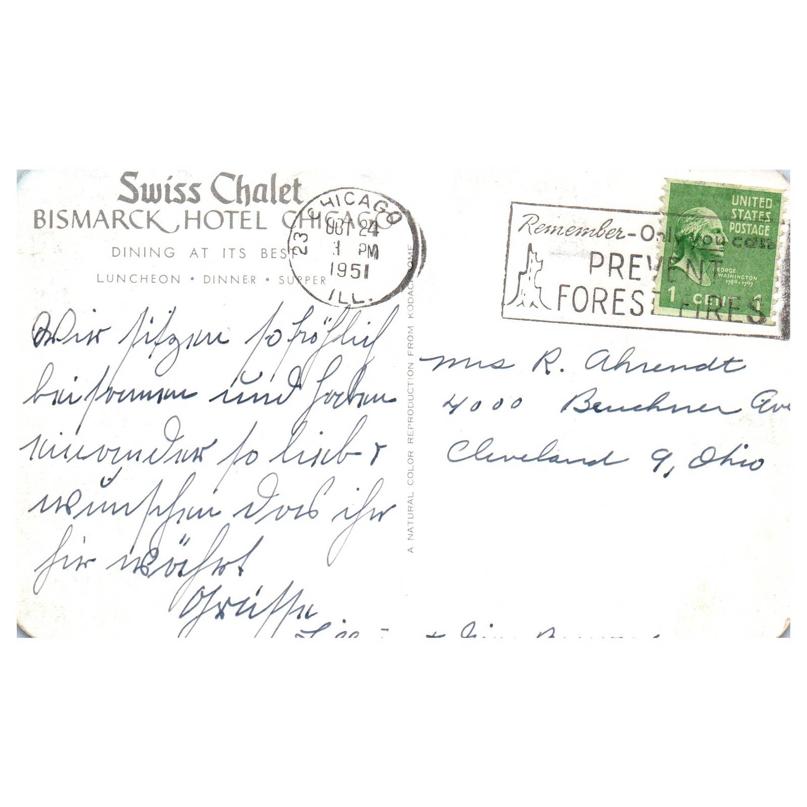 Vintage Postcard - Swiss Chalet Bismark Hotel Dining Room Interior 1951 TJ7-1