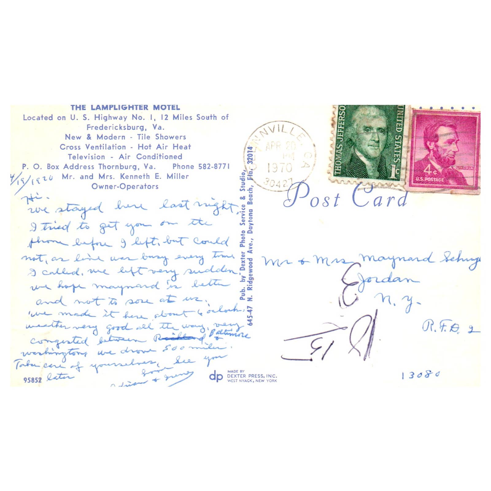 Vintage Postcard - The Lamplighter Motel - Fredericksburg Virginia AD9