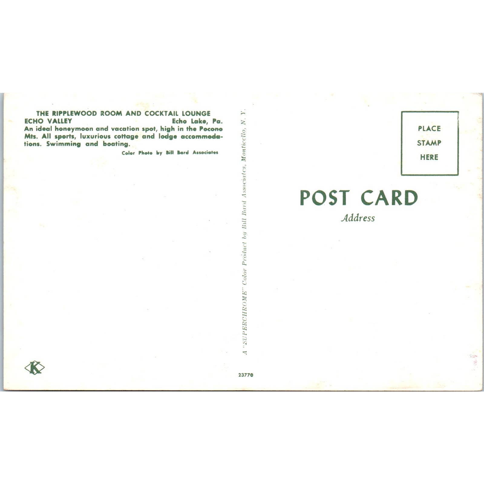 Vintage Postcard The Ripplewood Room & Cocktail Lounge Echo Valley PA TD8-P2