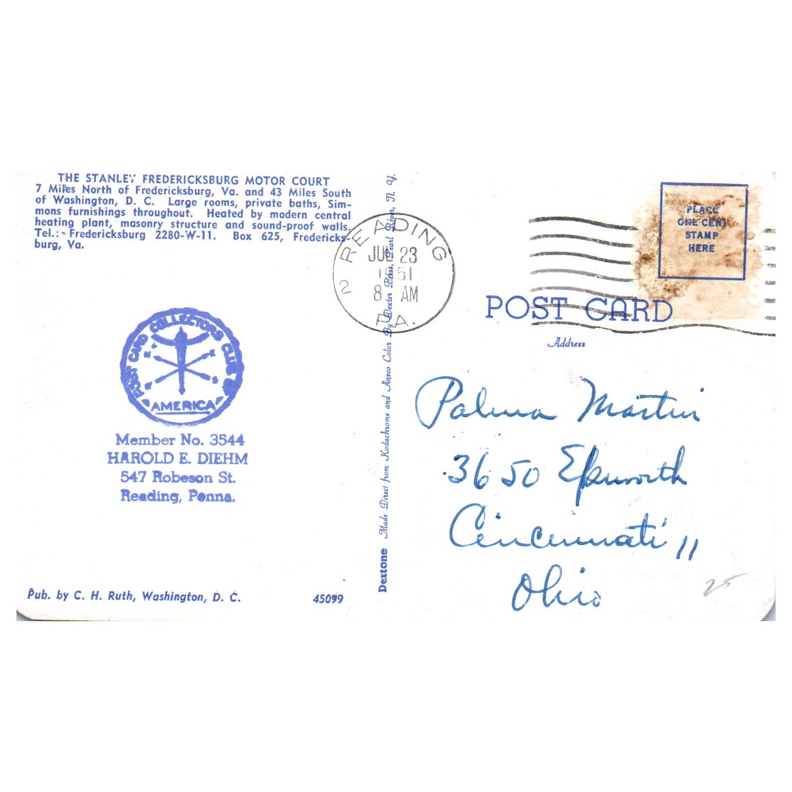 Vintage Postcard - The Stanley Fredericksburg Motor Court Virginia AD9