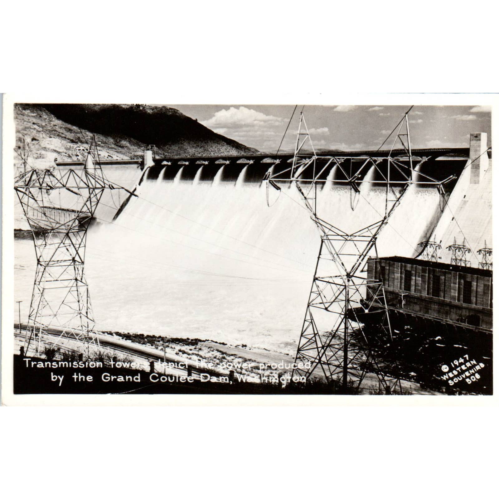 Vintage Postcard Transmission Tower Grand Coulee Dam Washington TD9-W2