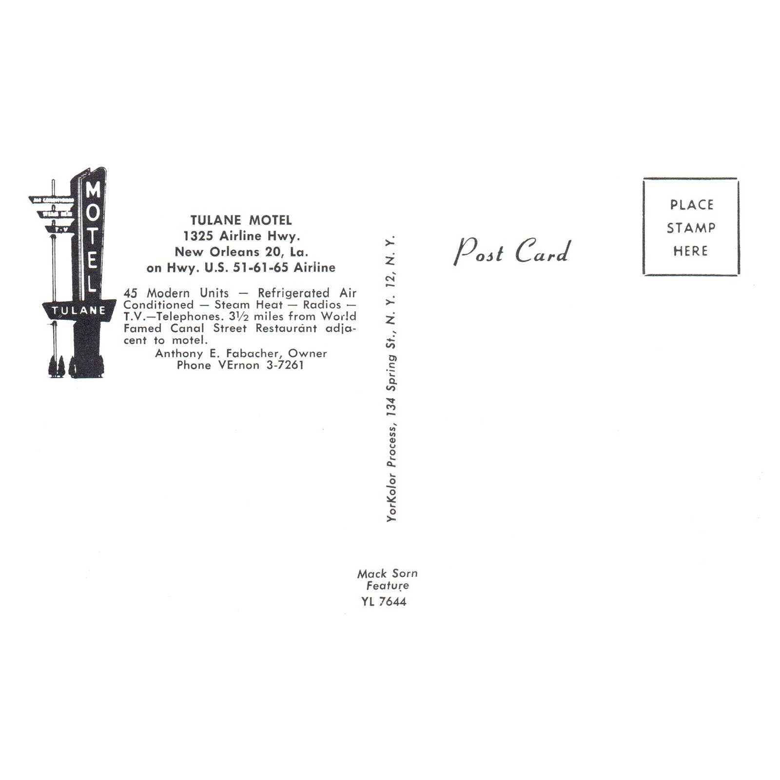 Vintage Postcard - Tulane Motel New Orleans Louisiana TJ6-1