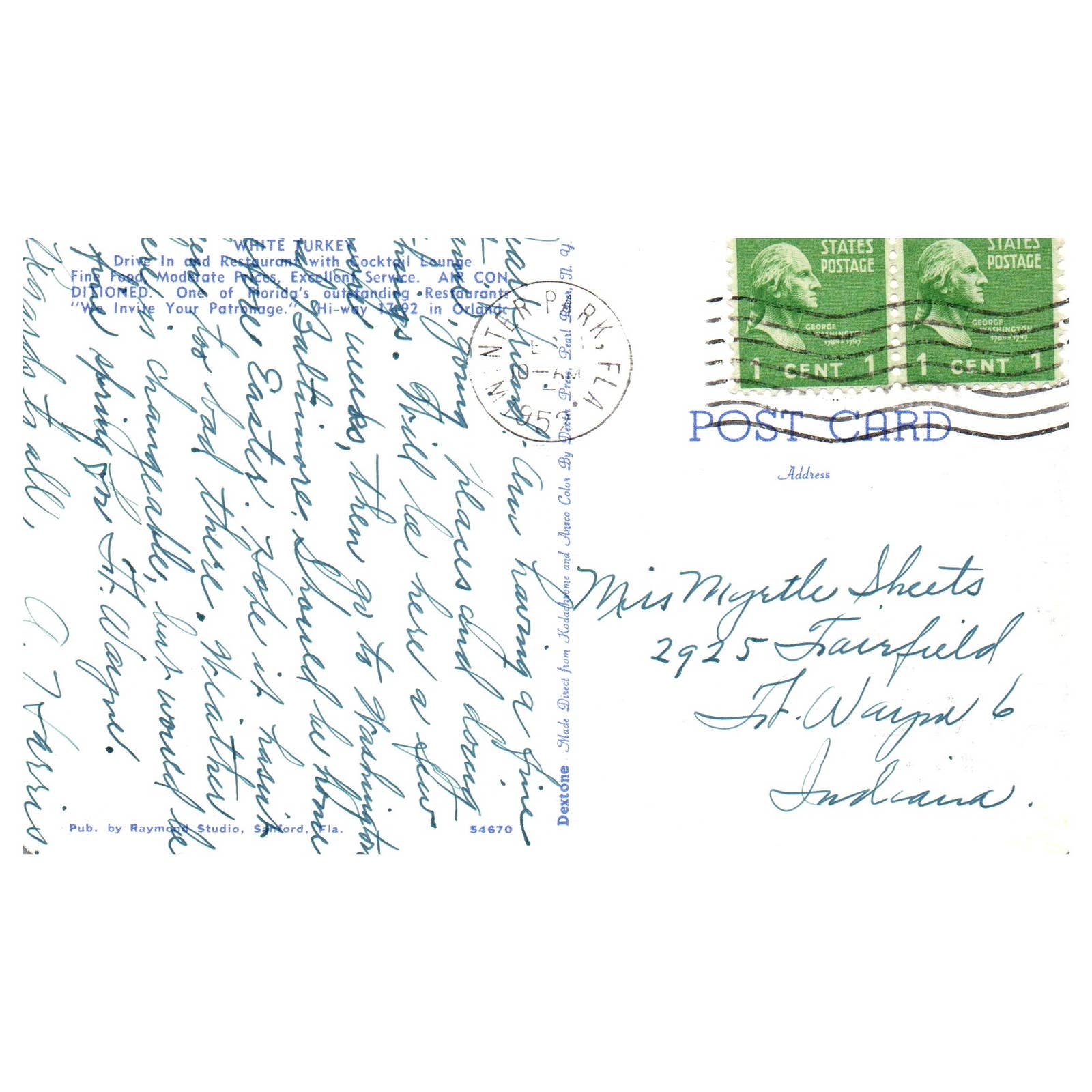 Vintage Postcard - White Turkey Drive-In & Restaurant Orlando Florida 1952 TJ6-1