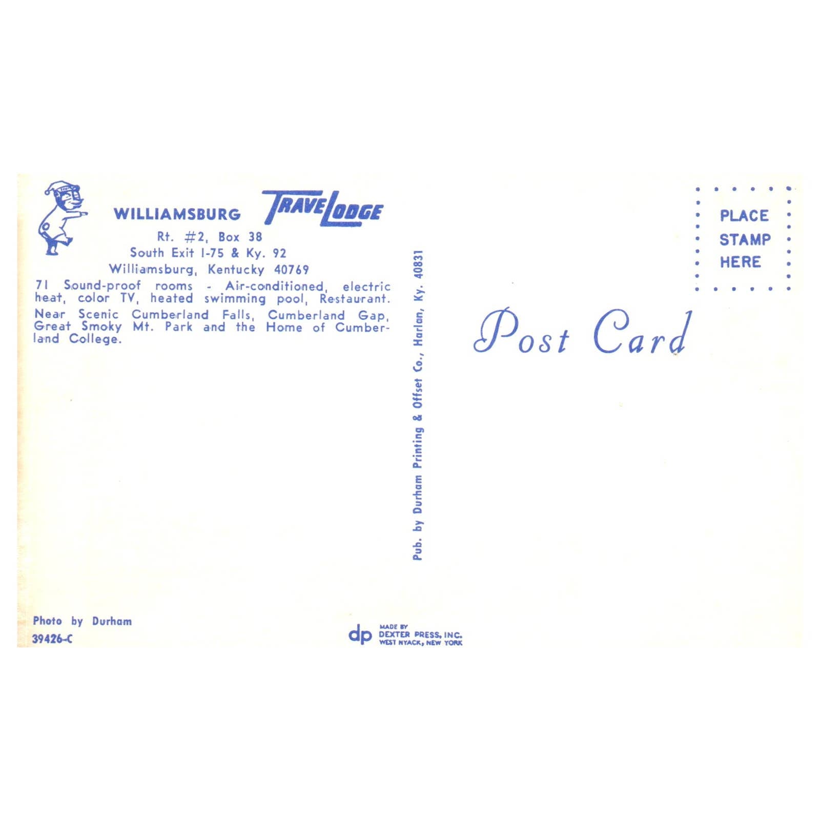 Vintage Postcard - Williamsburg Travel Lodge Motel Williamsburg Kentucky TJ7-1