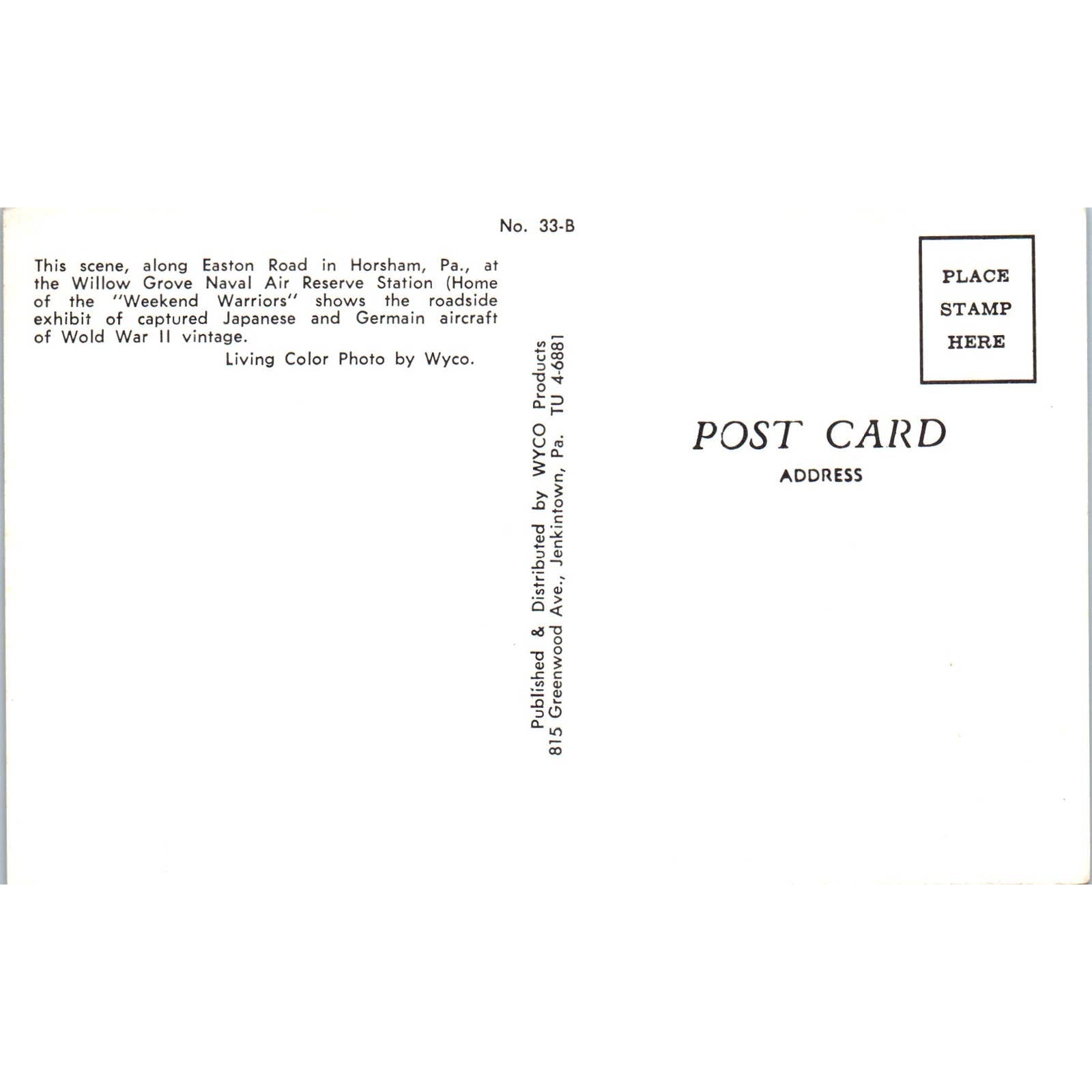 Vintage Postcard Willow Grove Naval Air Station Horsham PA EA3