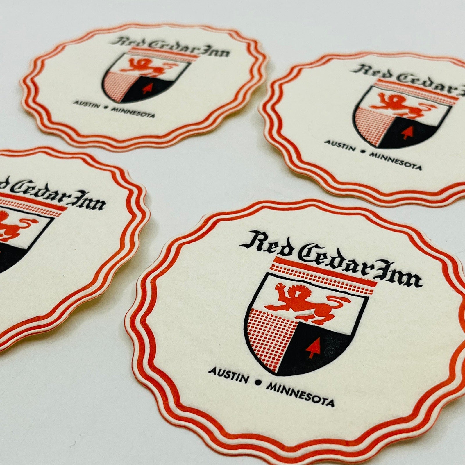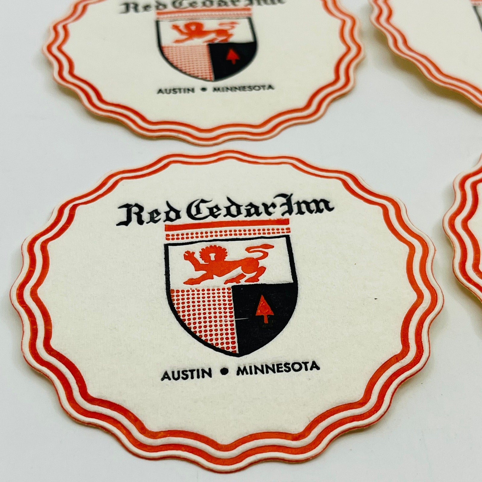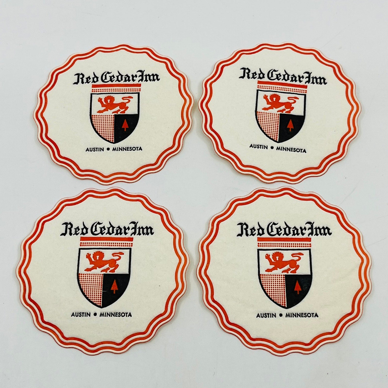 Vintage RED CEDAR INN Austin Minnesota Drink Coaster Embossed Set of 4 TA9