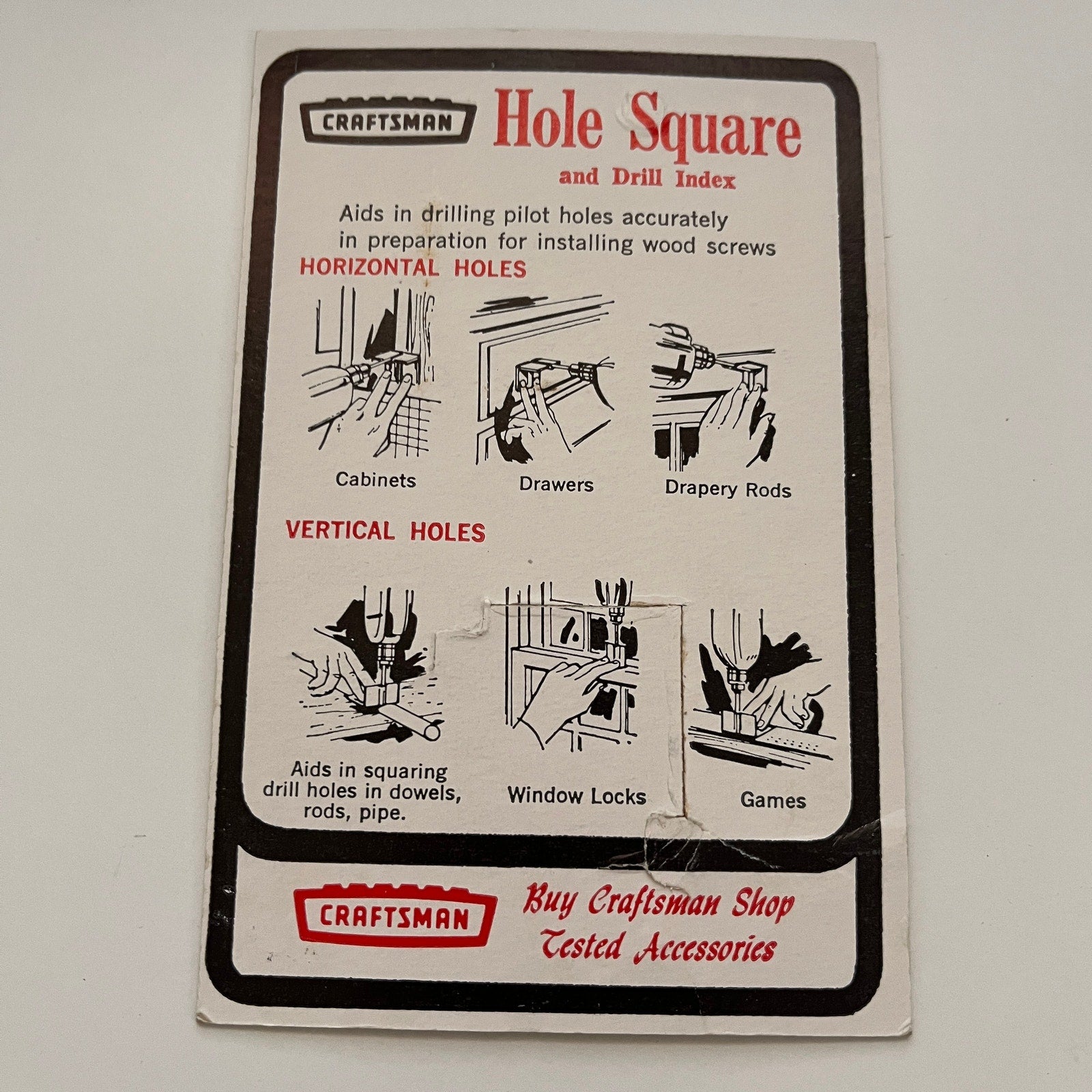 Vintage Sears Craftsman Hole Square and Drill Index CARD ONLY TK2-XB5
