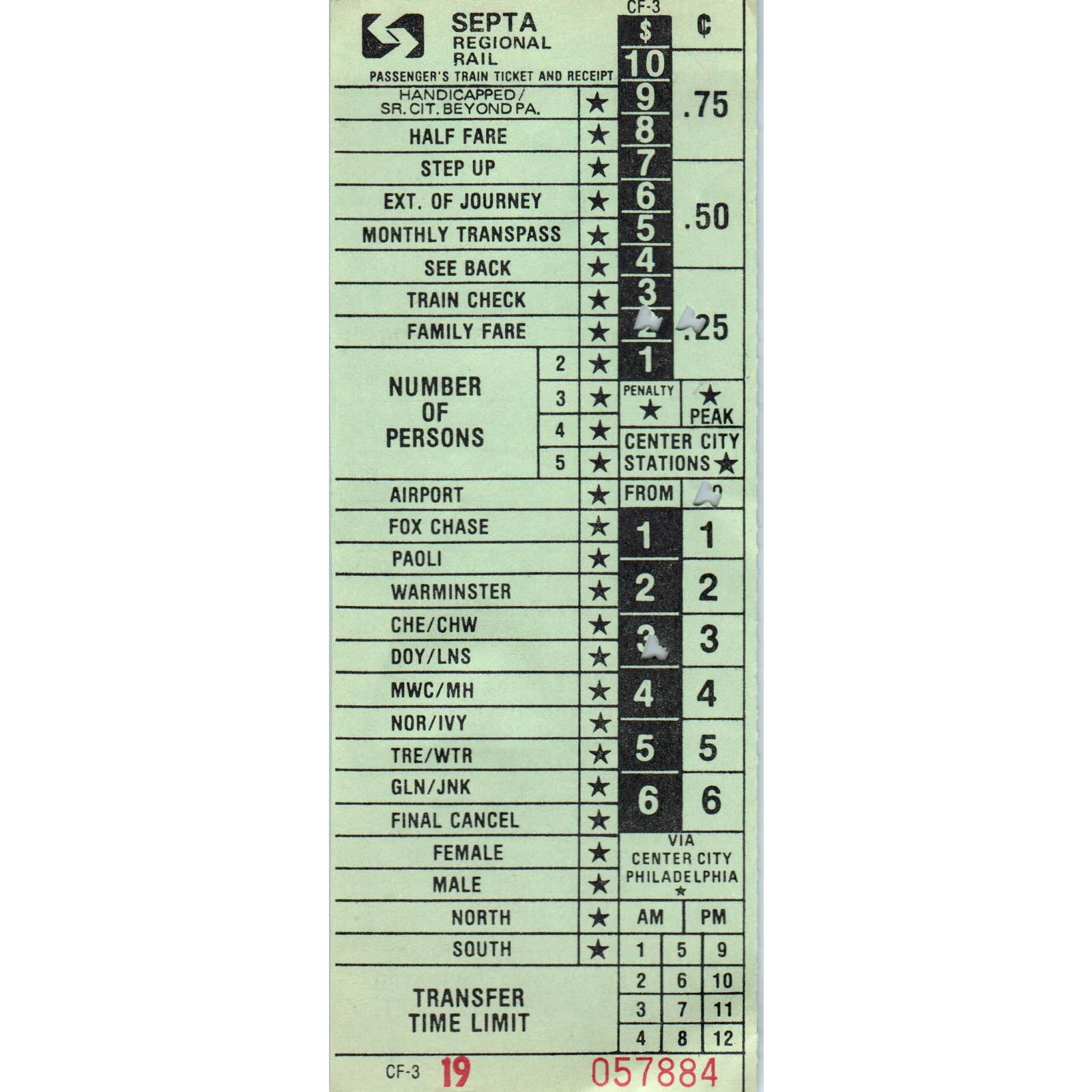 Vintage Septa Regional Rail Passenger's Train Ticket and Receipt SE8