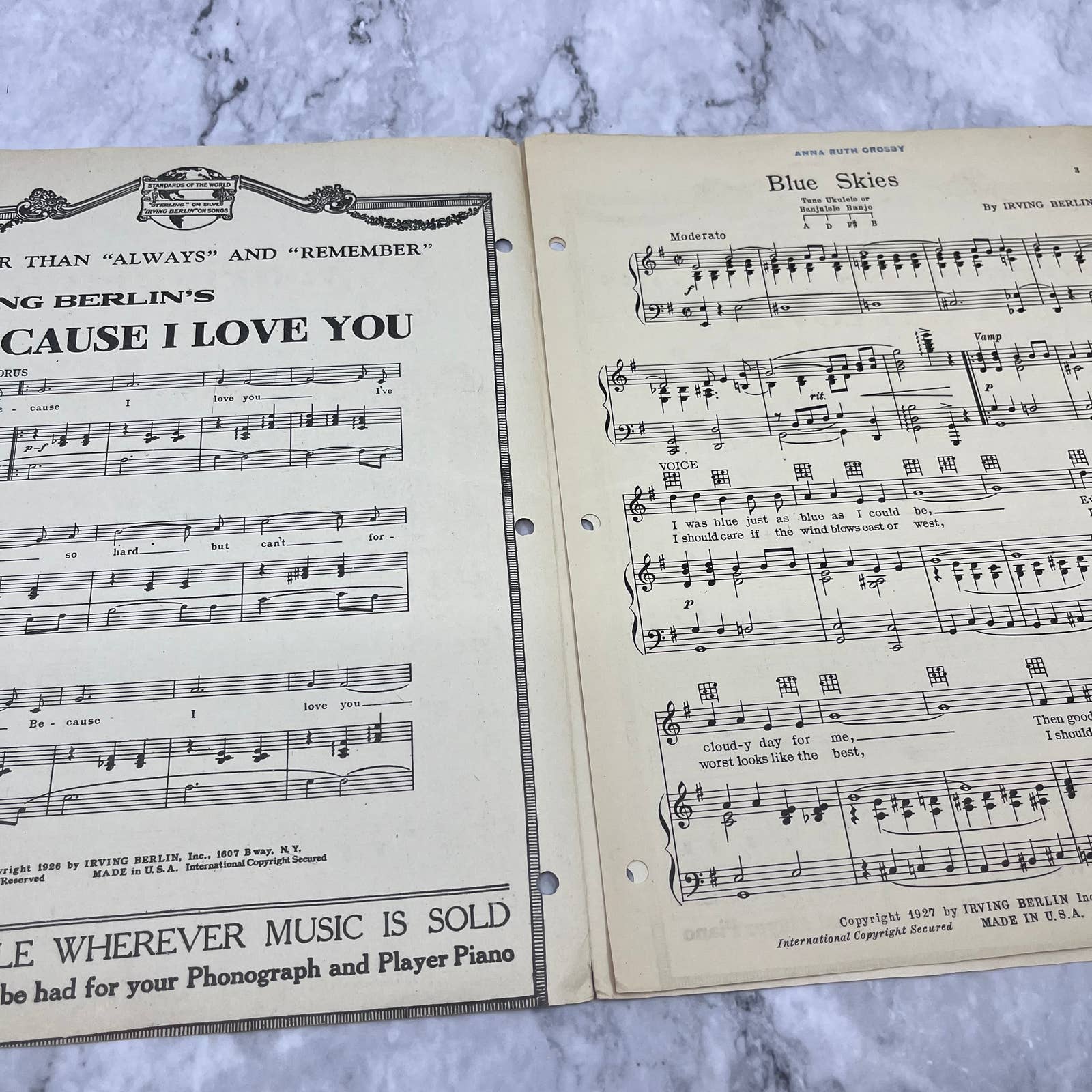 Vintage Sheet Music Blue Skies Irving Berlin 1927 TJ4