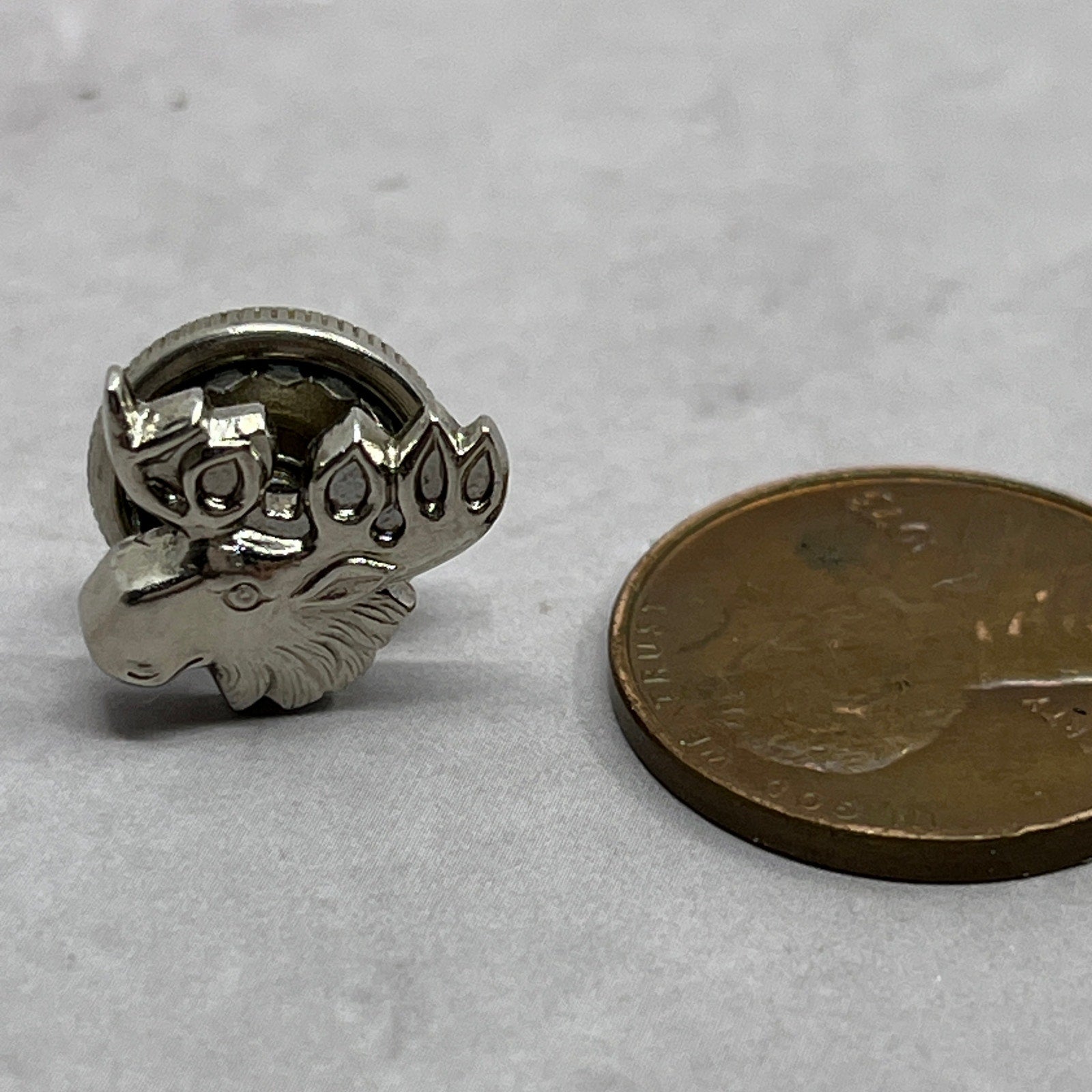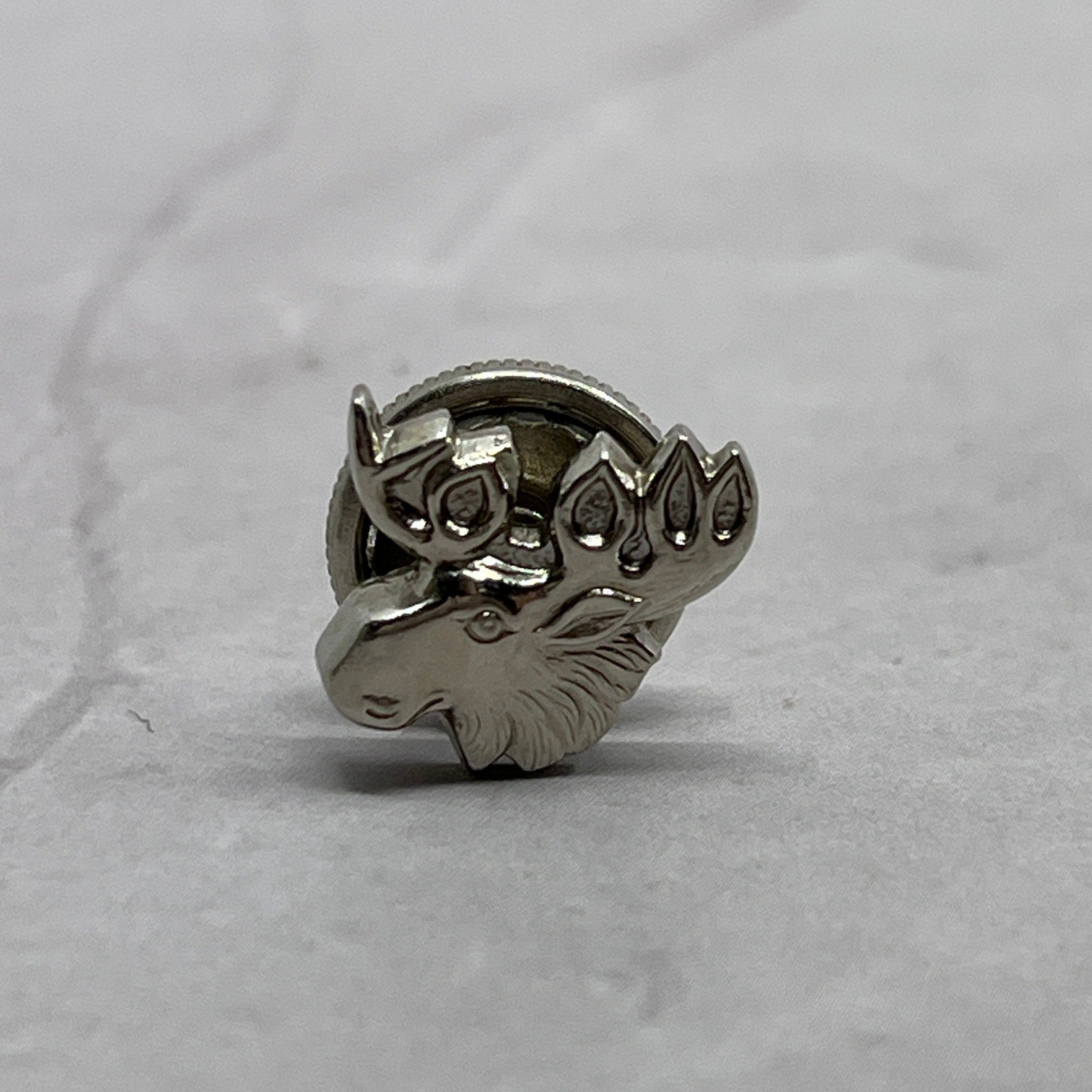 Vintage Silver Tone Moose Head Lapel Pin Pinback Button SB7-SPB