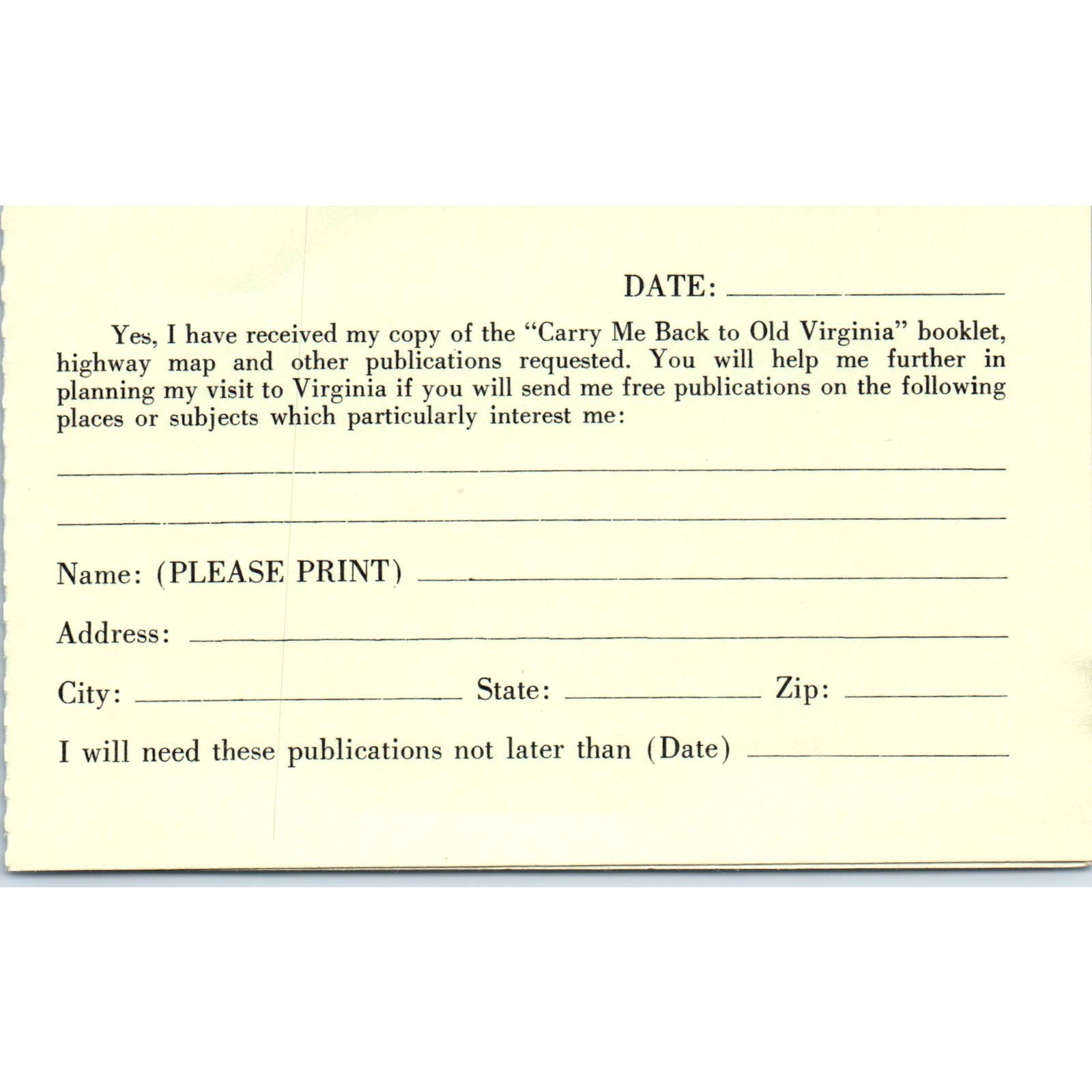 Virginia State Travel Service Planning Assistance Original Postcard TJ9-P2