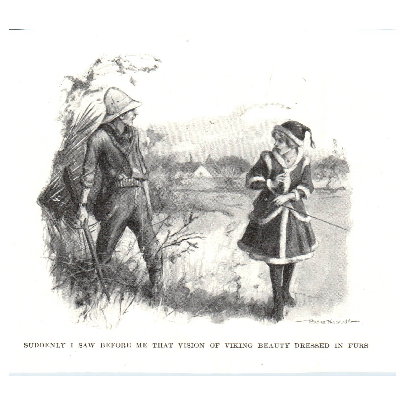 Vision of a Viking Beauty Dressed in Furs - 1921 Original Illustration TJ7-S