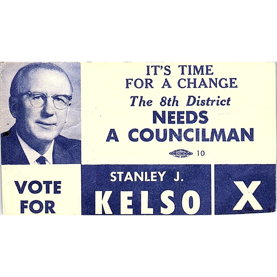 Vote For Stanley J. Kelso 8th District Councilman Vintage Business Card SF3-B3