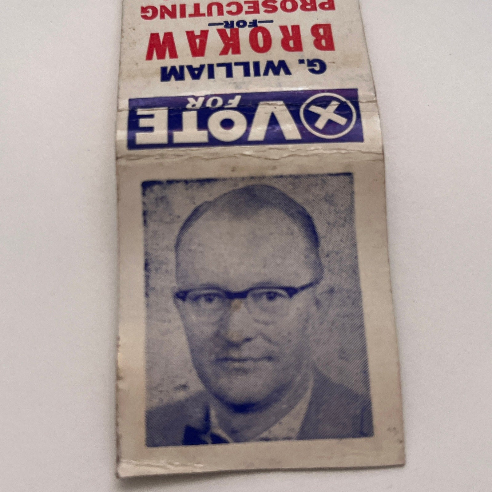 Vote G. William Brokaw Prosecuting Attorney Columbiana County Republican Vintage Matchbook Cover TB8-MB-3