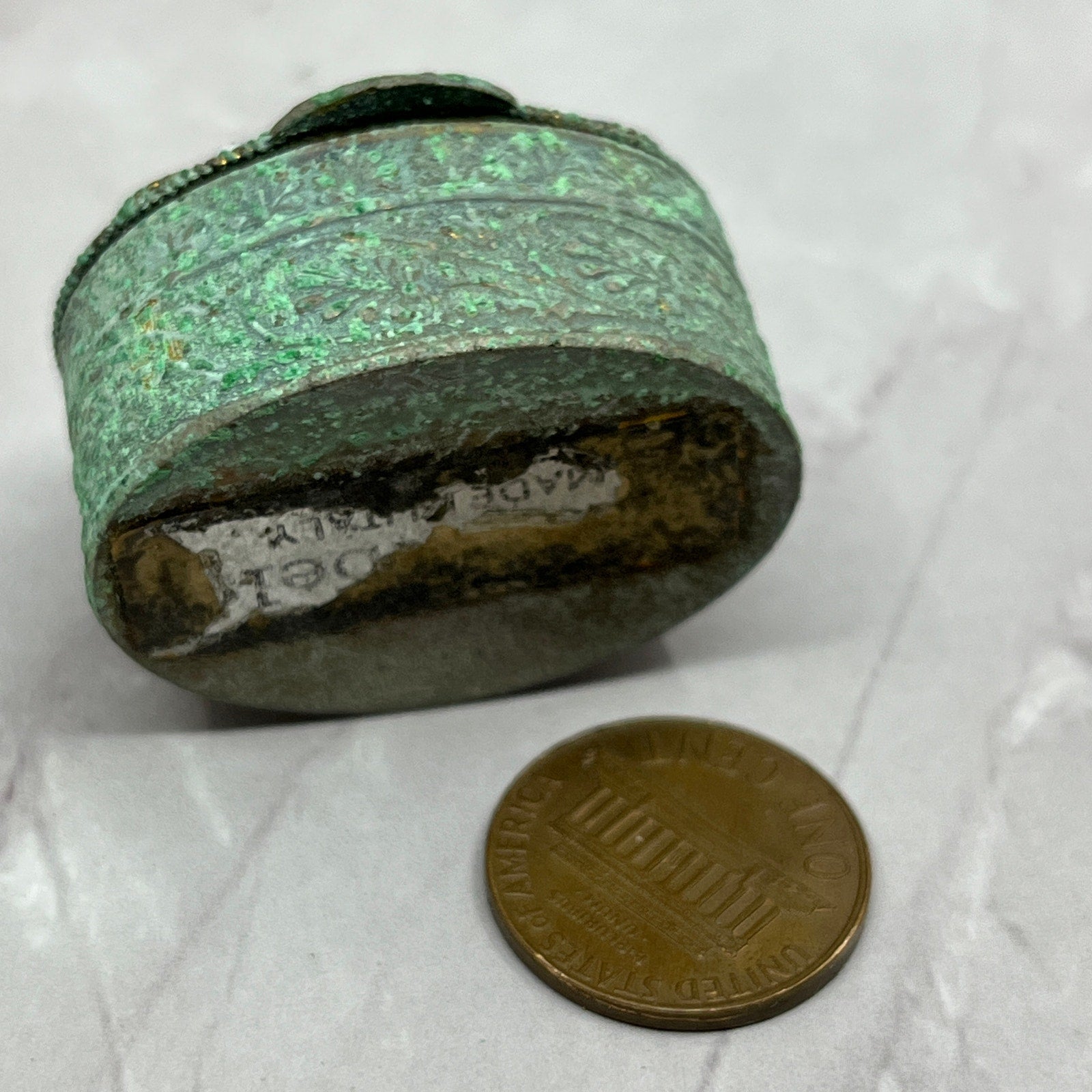 Tarnished on one side. See picture next to penny for size/scale. See pics for condition.