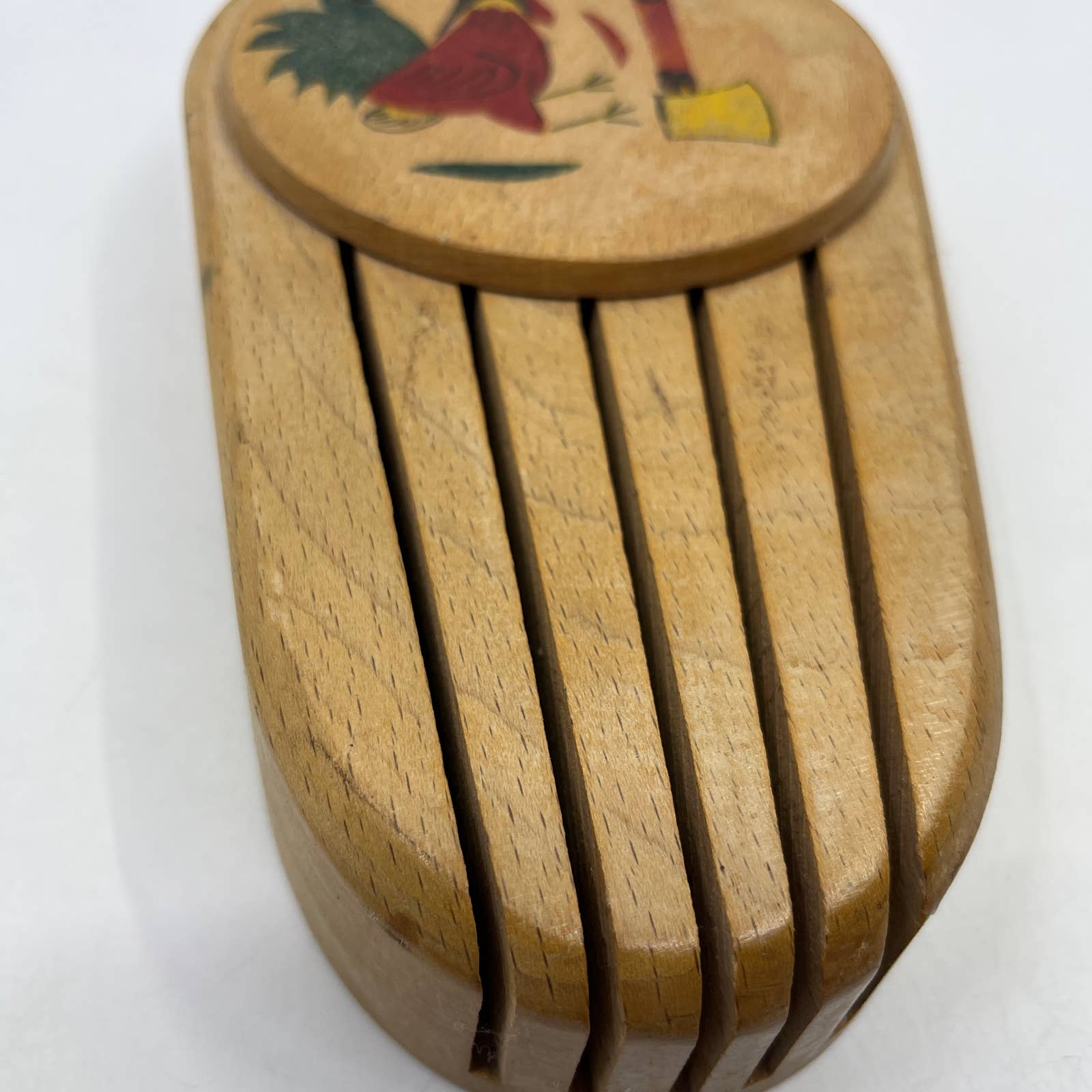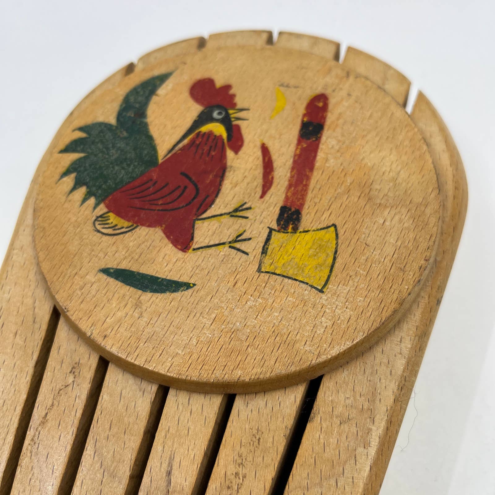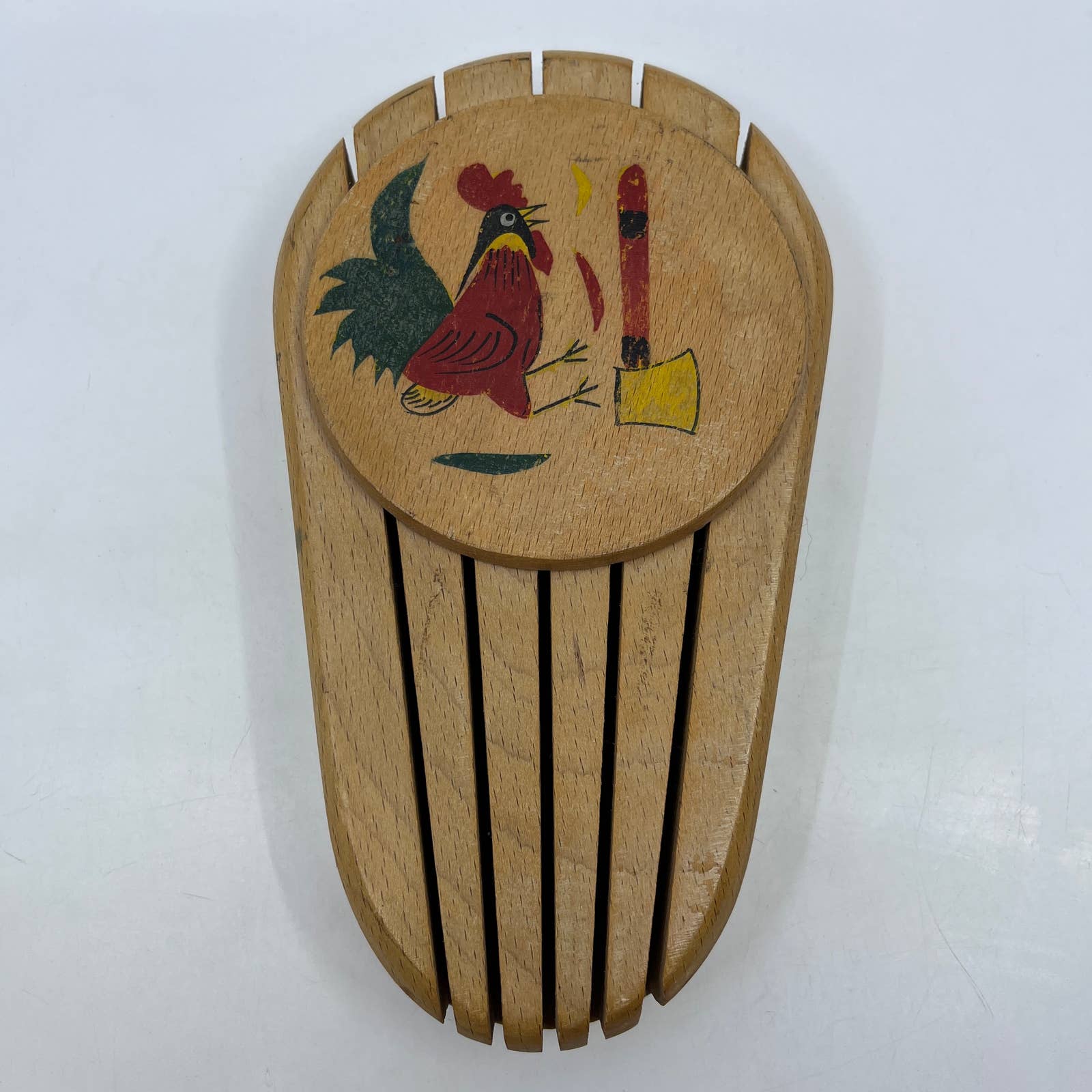VTG Kitsch Wood Knife Block w/Rooster Wall Hanger MARBO Japan 9" TI2