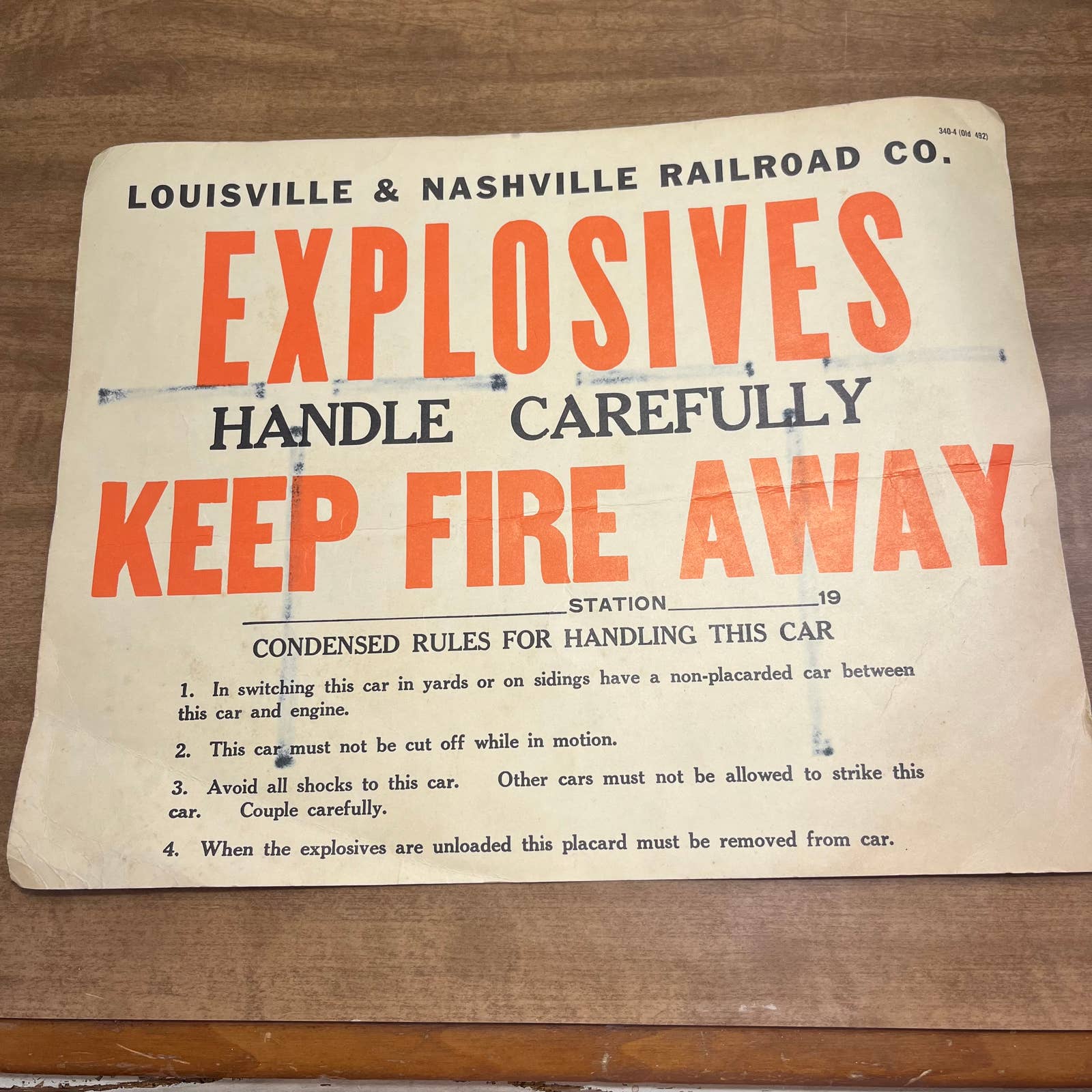 VTG Louisville & Nashville Railroad Explosives Form 340-4 Paper Sign 14” TH1-1