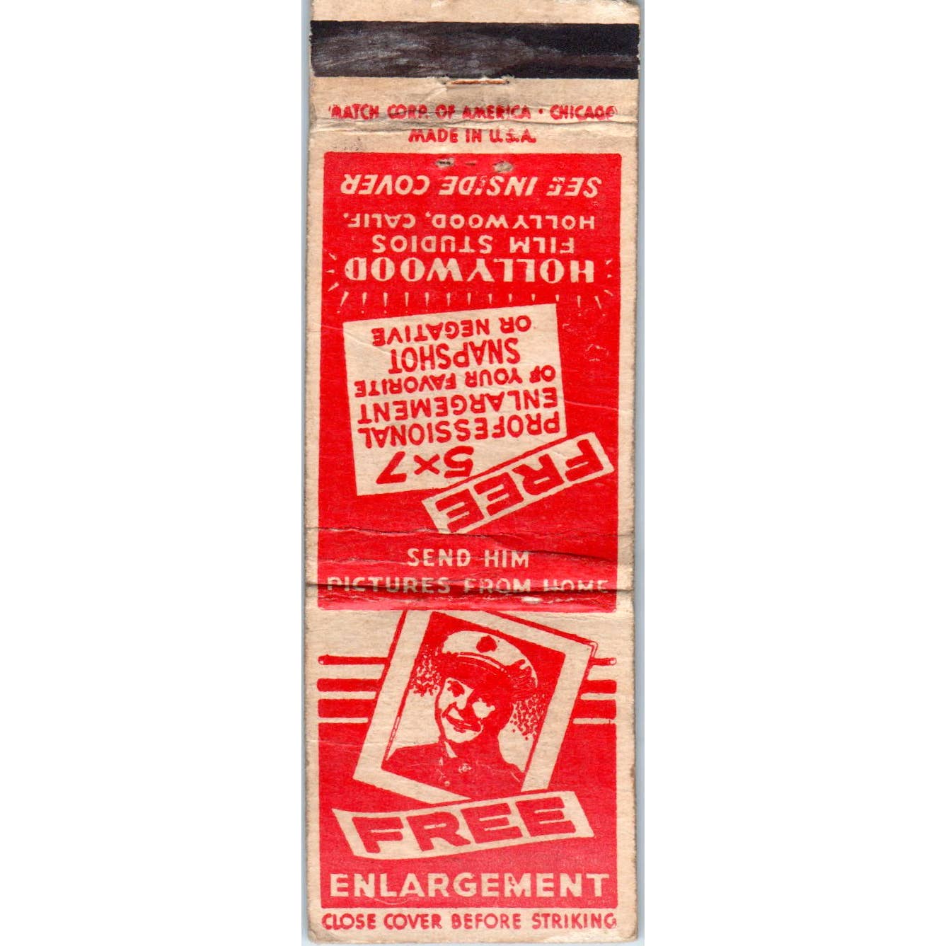Vintage Matchbook Cover Hollywood Film Studios Photo Development California SE5-2