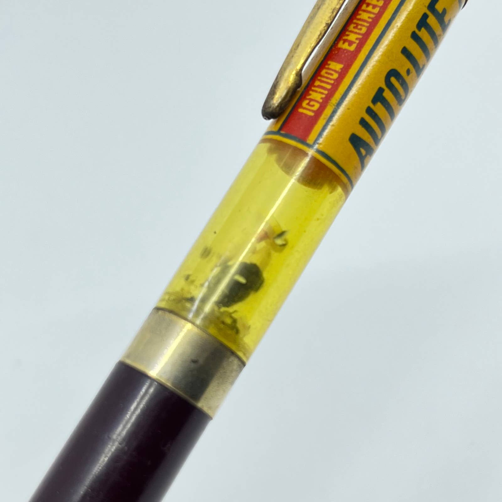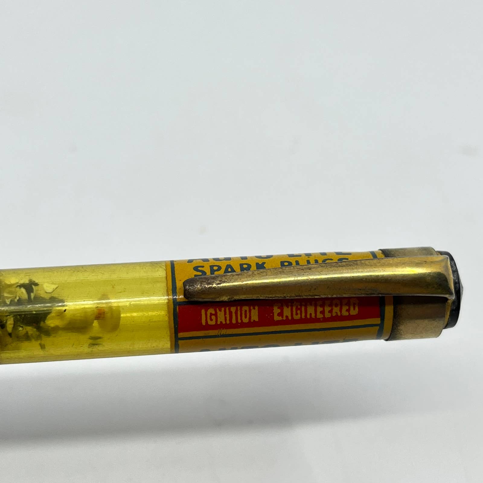 Has some object that shakes around in the transparent part. My guess is it was a little spark plug that has broken.