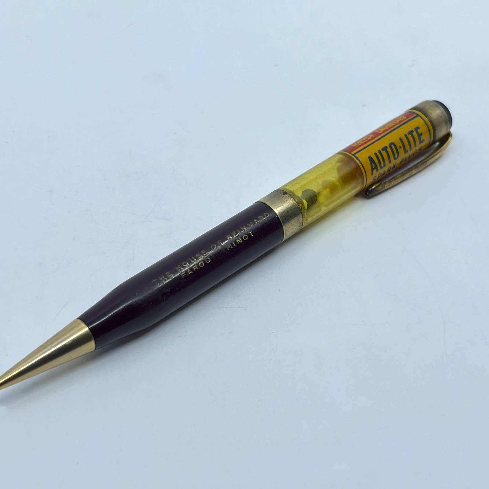 Vtg Mechanical Pencil Auto Lite Spark Plugs House of Reinhard Fargo Minot ND SC3