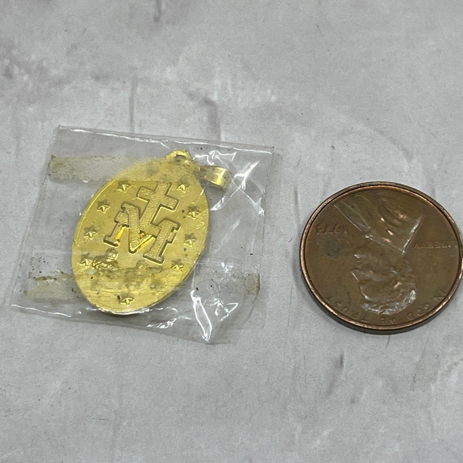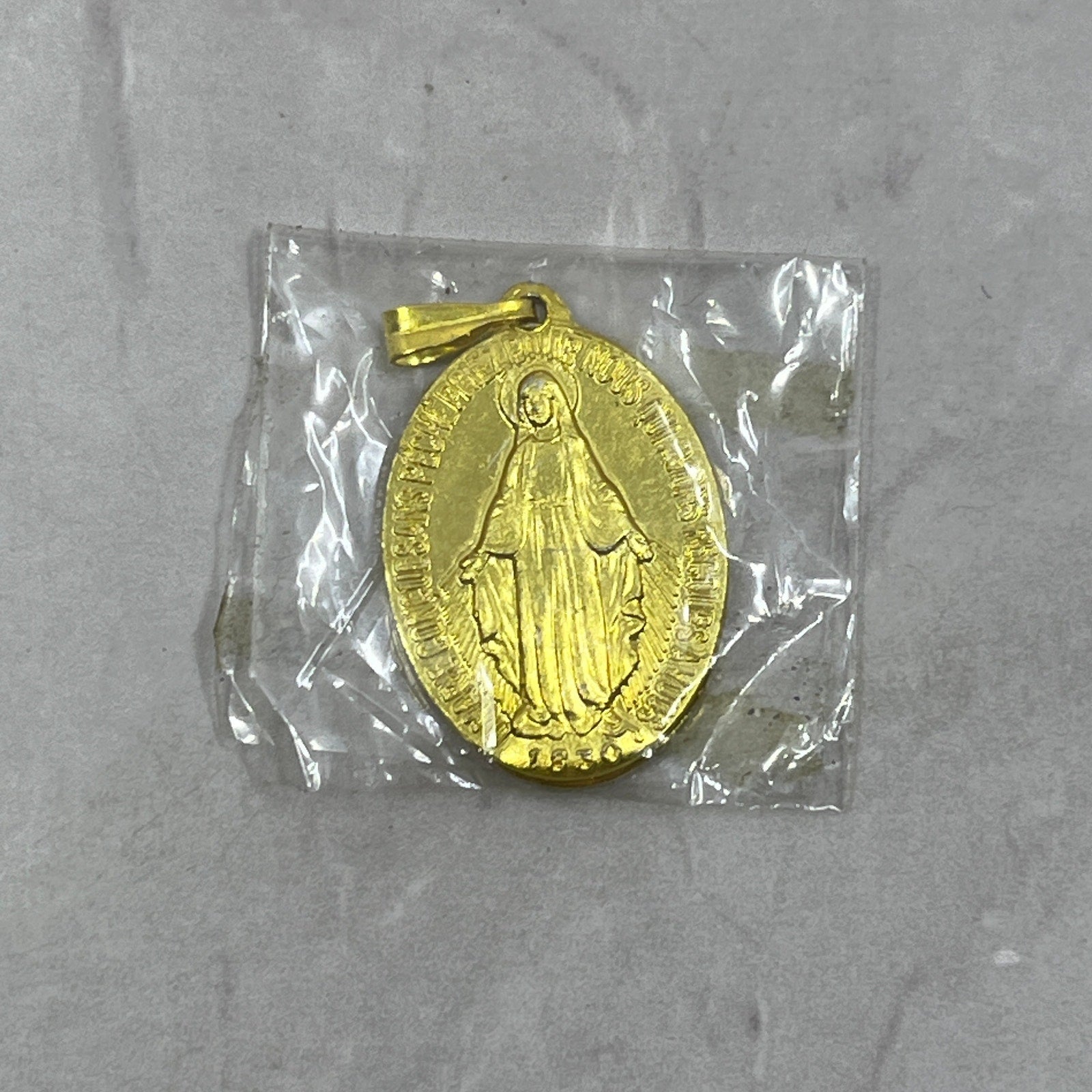 VTG Metal Gold Tone Virgin Mary Religious Catholic Charm Miraculous Medal 1" SB7